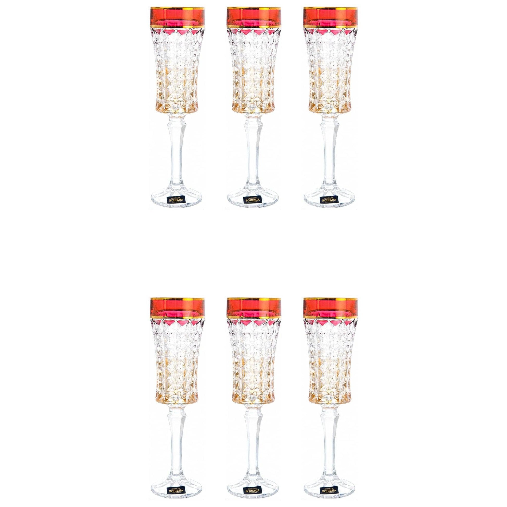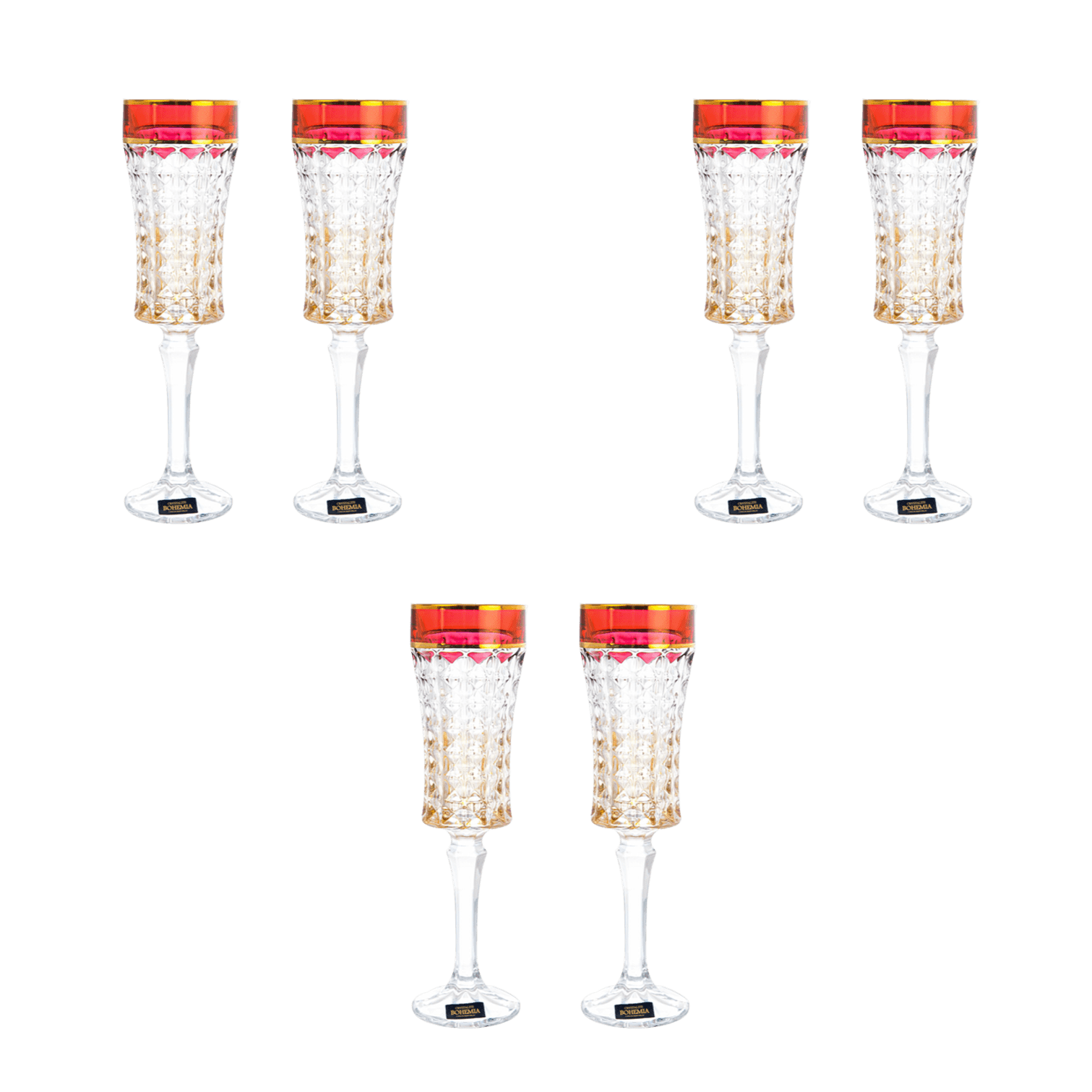 Bohemia Crystal - Flute Glass Set 6 Pieces - Red & Gold - 120ml - 2700010707
