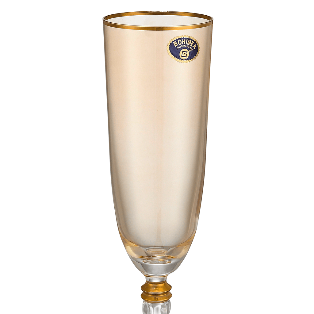 Bohemia Crystal - Flute Glass Set 6 Pieces with Gold Rim - Orange - 275ml - Crystal