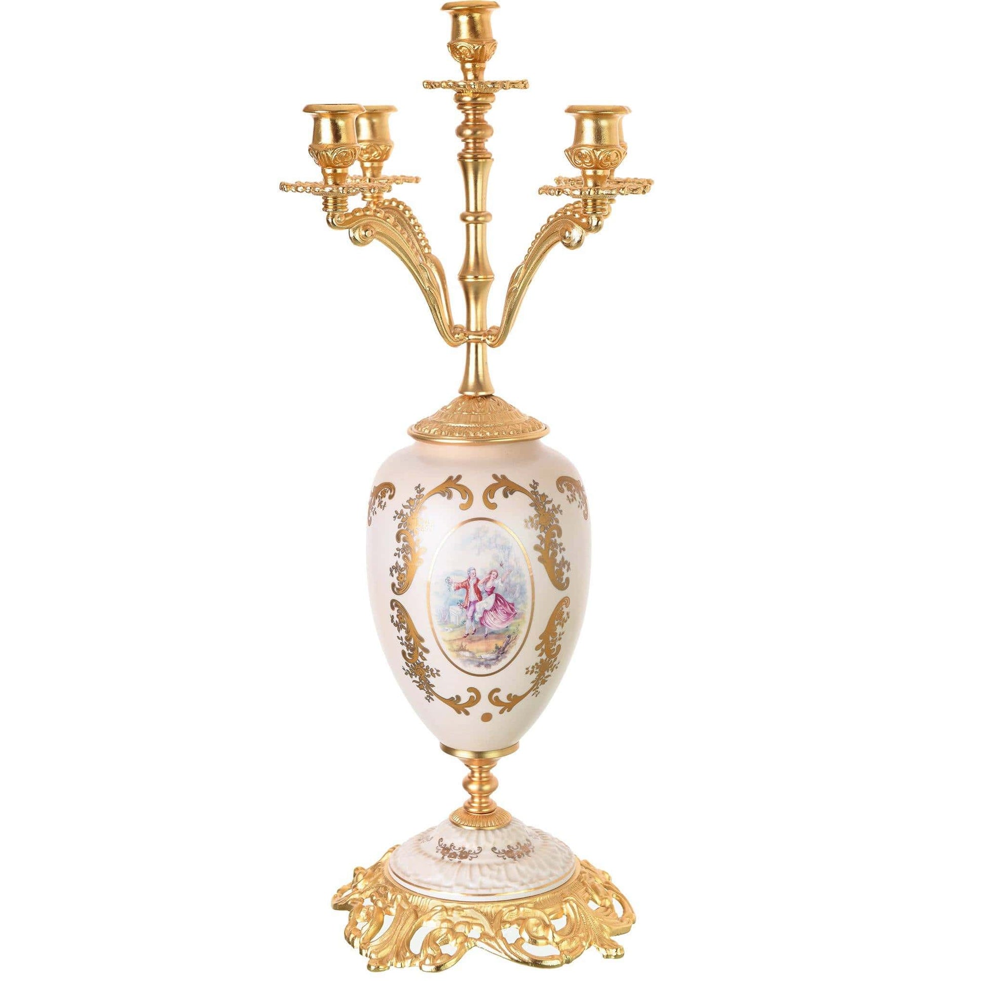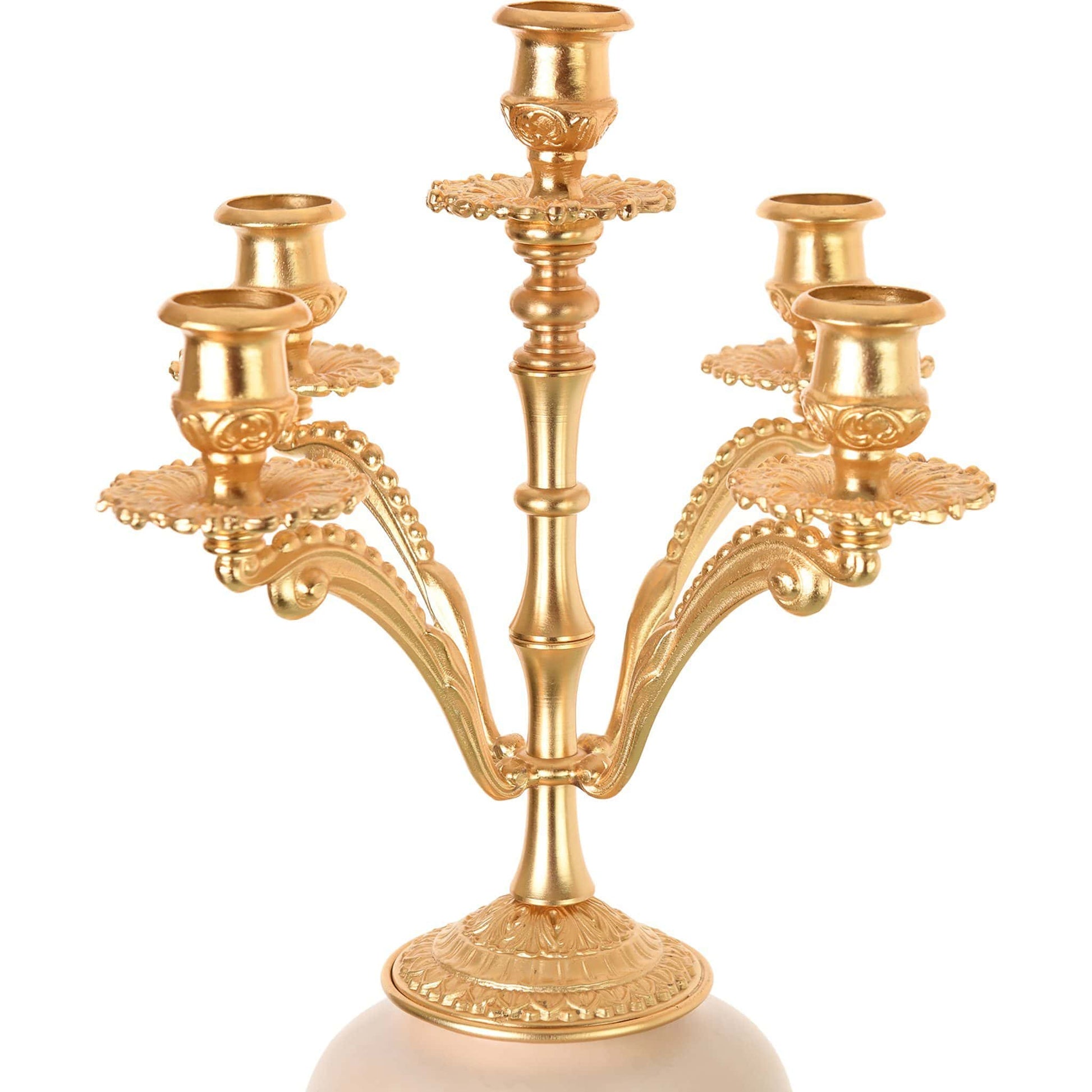Item: Candle Holder with Base 5 Lights - Romeo & Juliet - Beige & Gold
