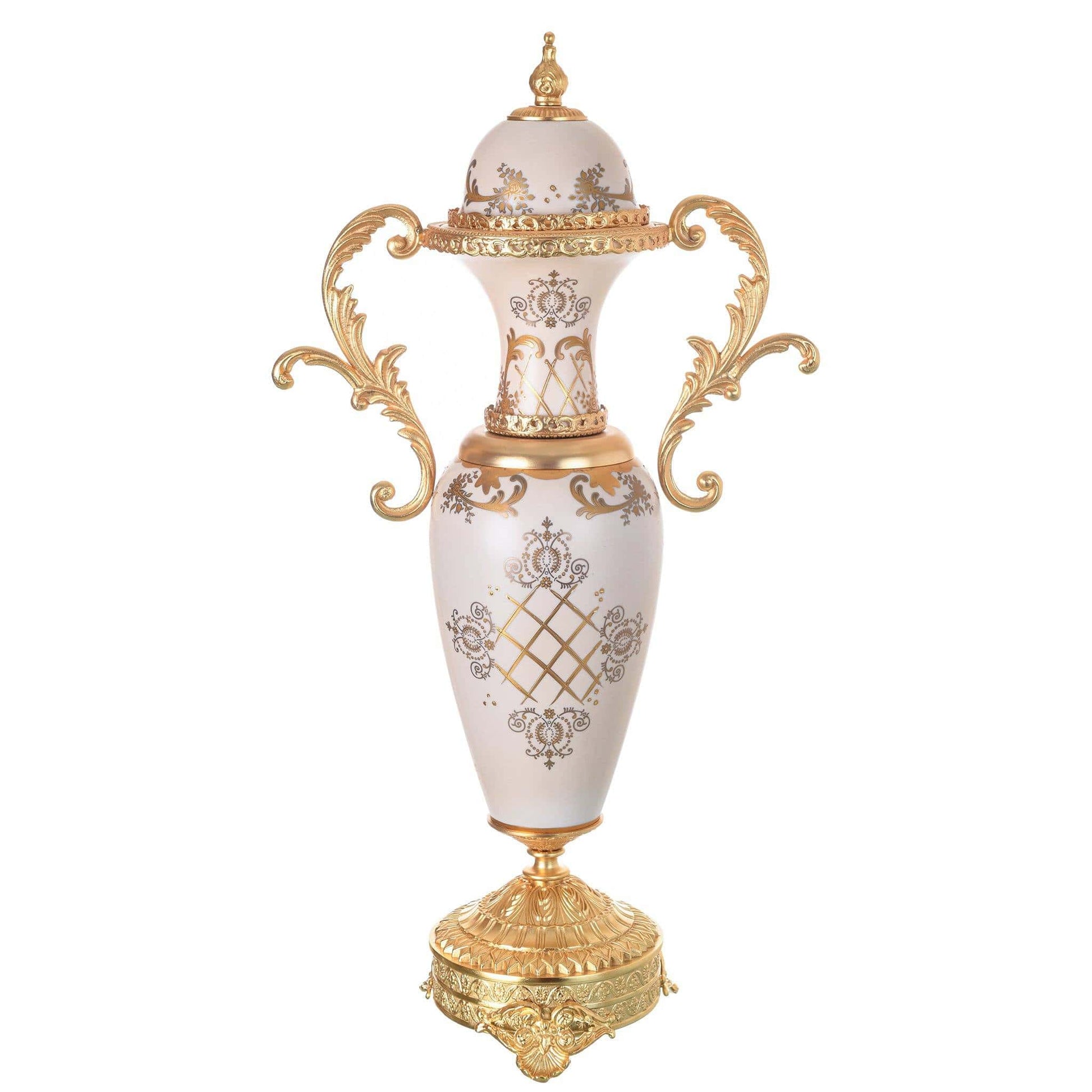 Caroline - Imperial Small Potiche with Gold Plated Base - Beige & Gold - 51cm