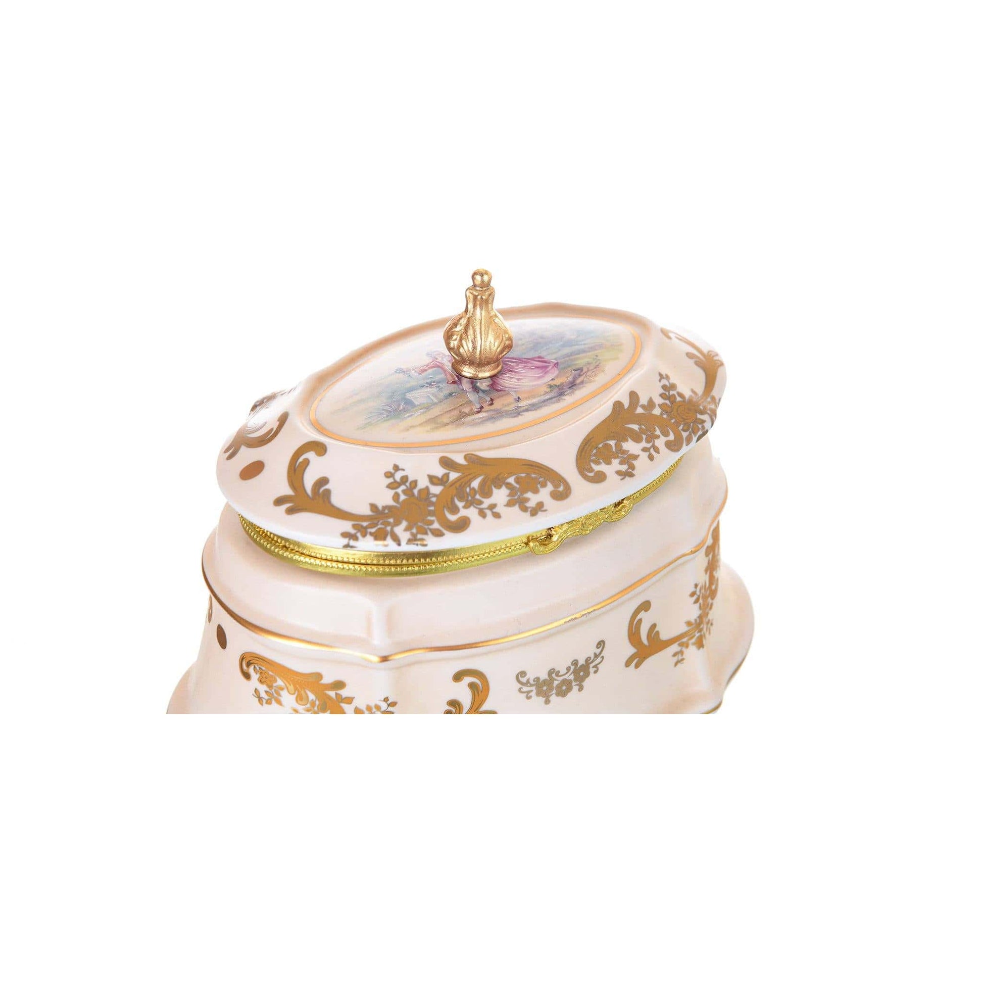 Item: Oval Box with Cover - Romeo & Juliet - Beige & Gold