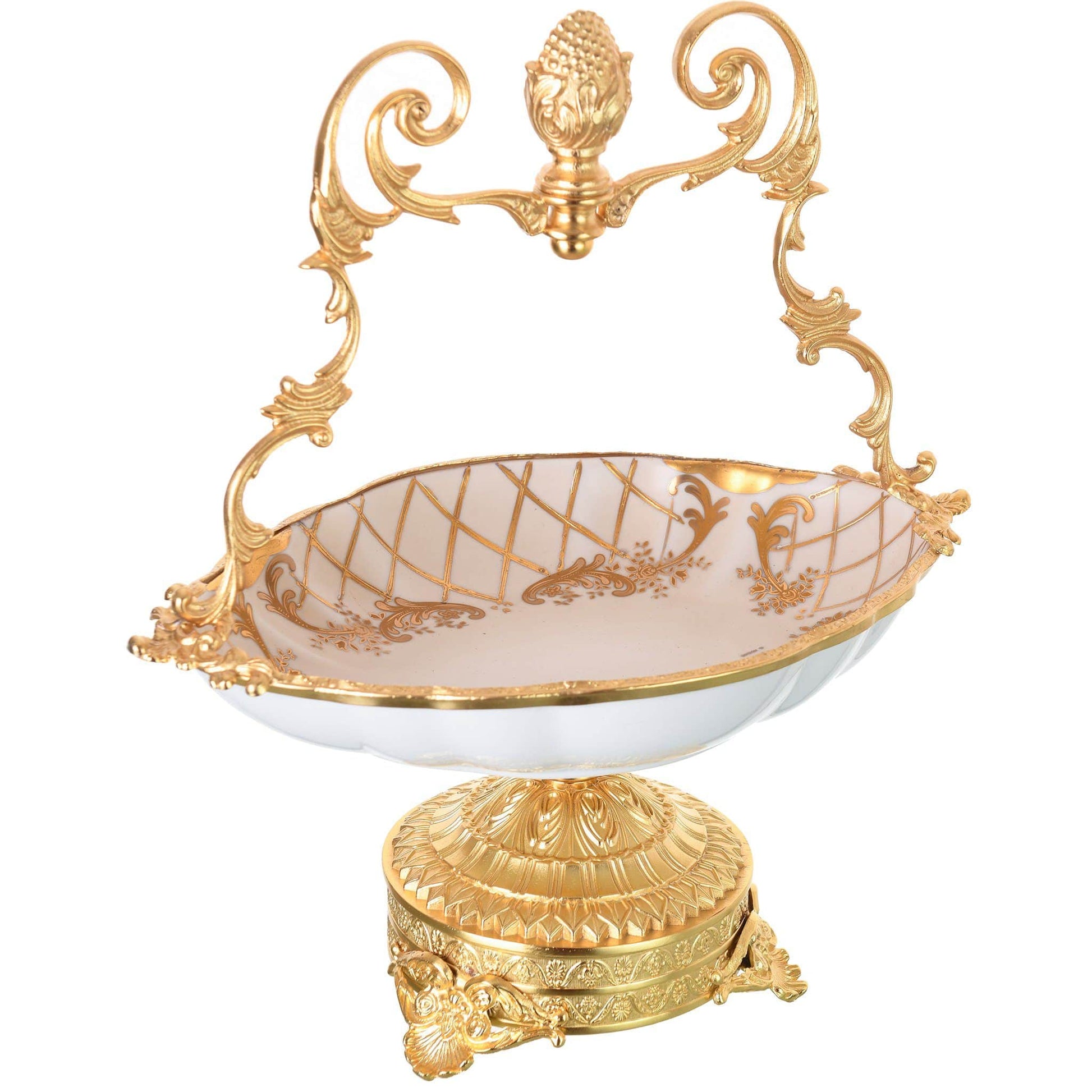 Item: Imperial Oval Basket with Gold Plated Base & Handles - Beige & Gold
