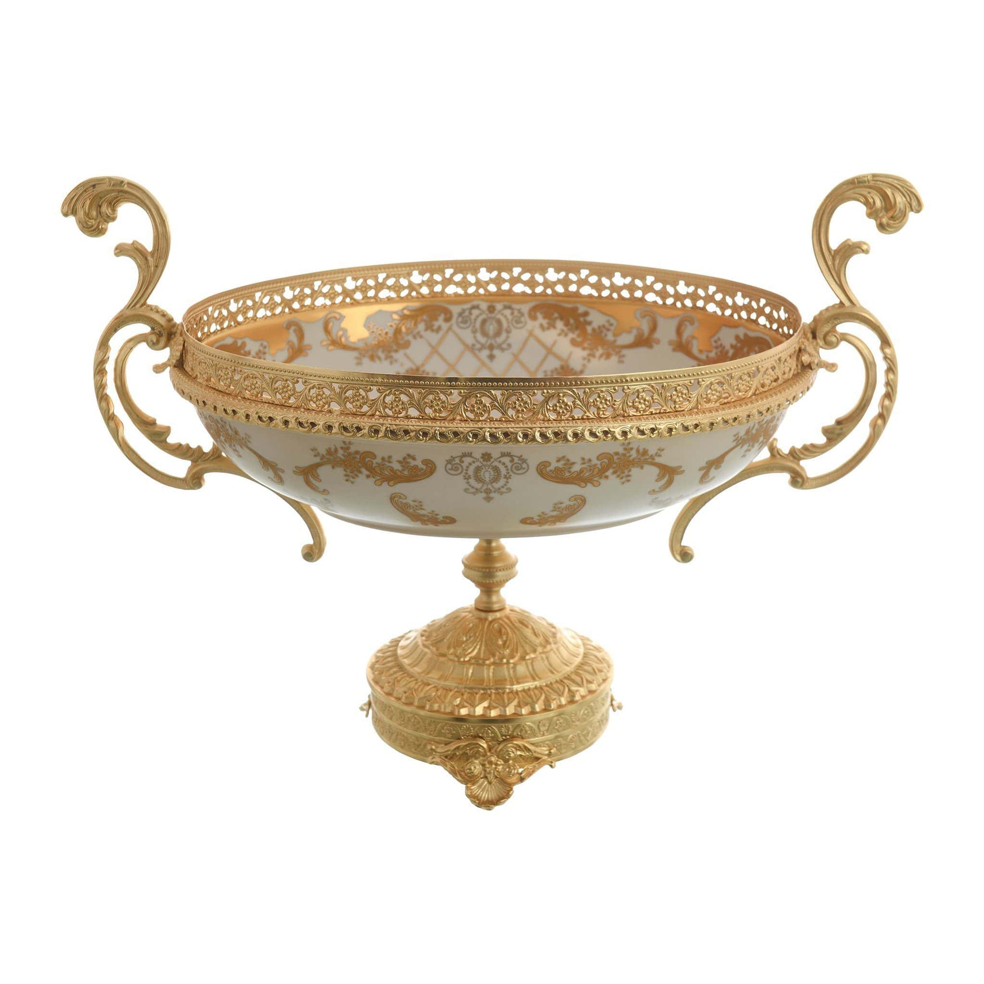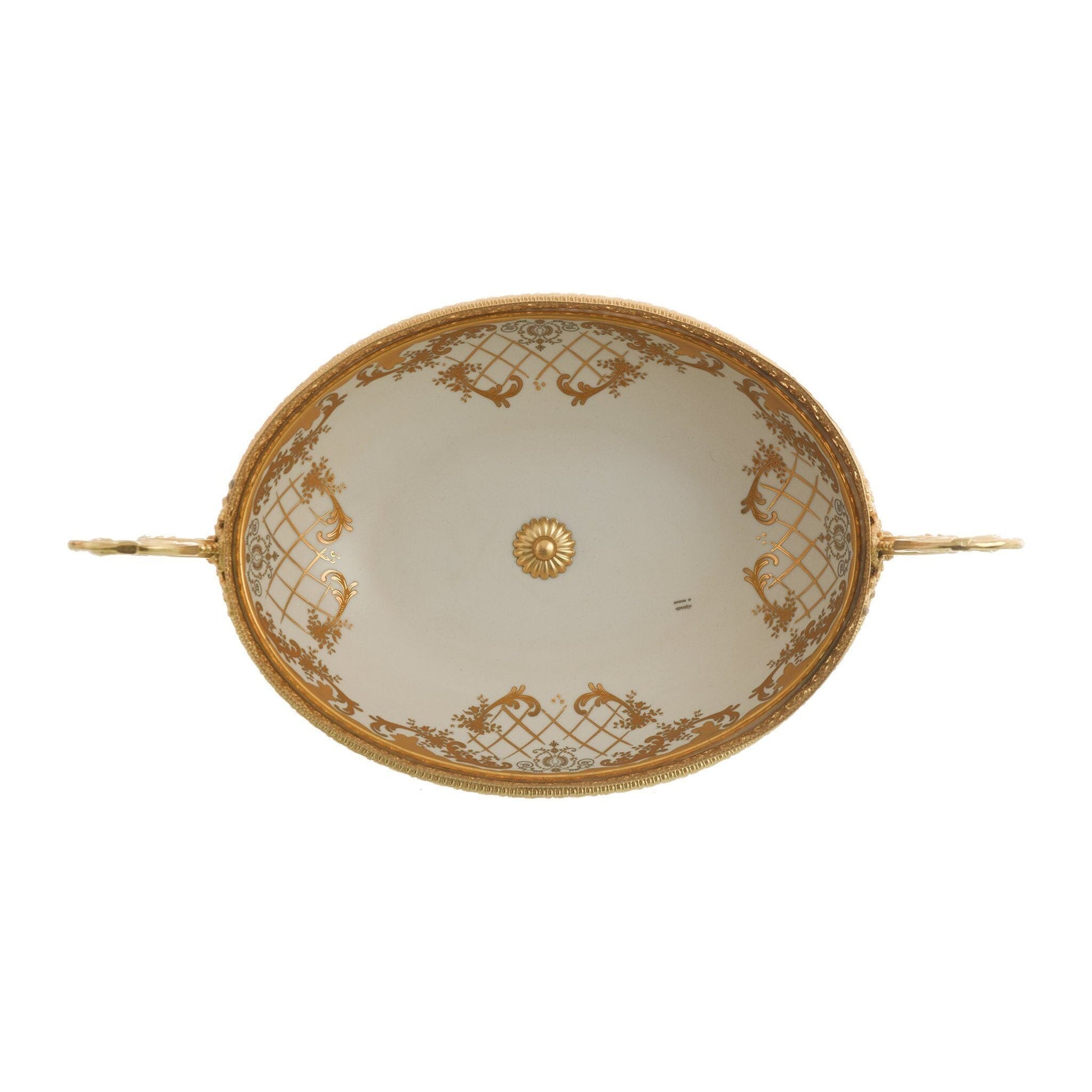 Caroline - Imperial Oval Bowl with Gold Plated Base - Beige & Gold - 48x27x32cm