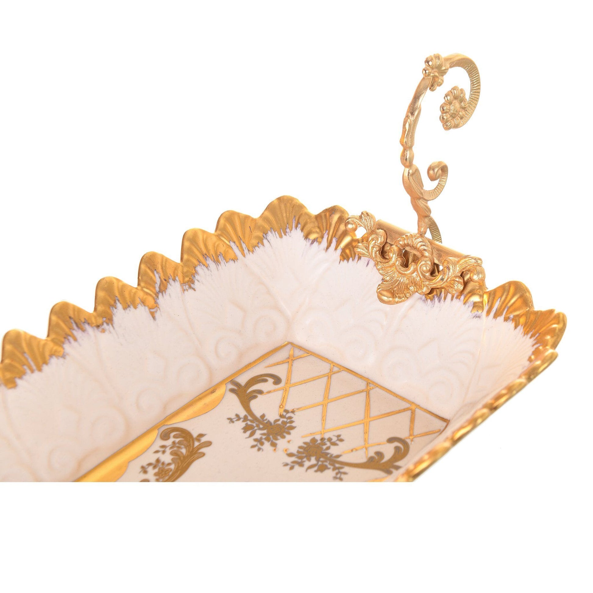 Item: Imperial Rectangular Plate with Gold Plated Handles - Beige & Gold