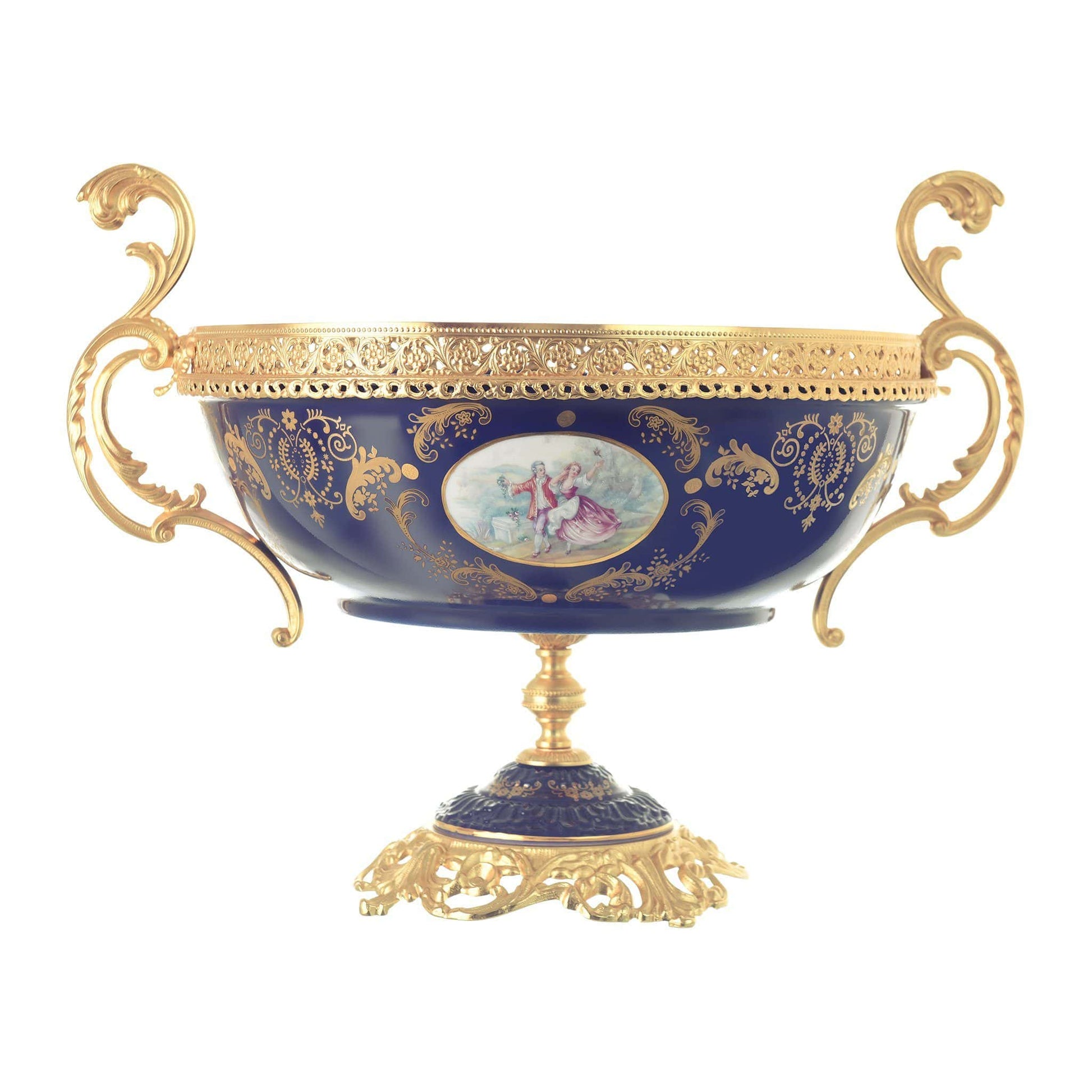 Caroline - Oval Bowl with Base - Romeo & Juliet - Blue & Gold - 45x36x38cm