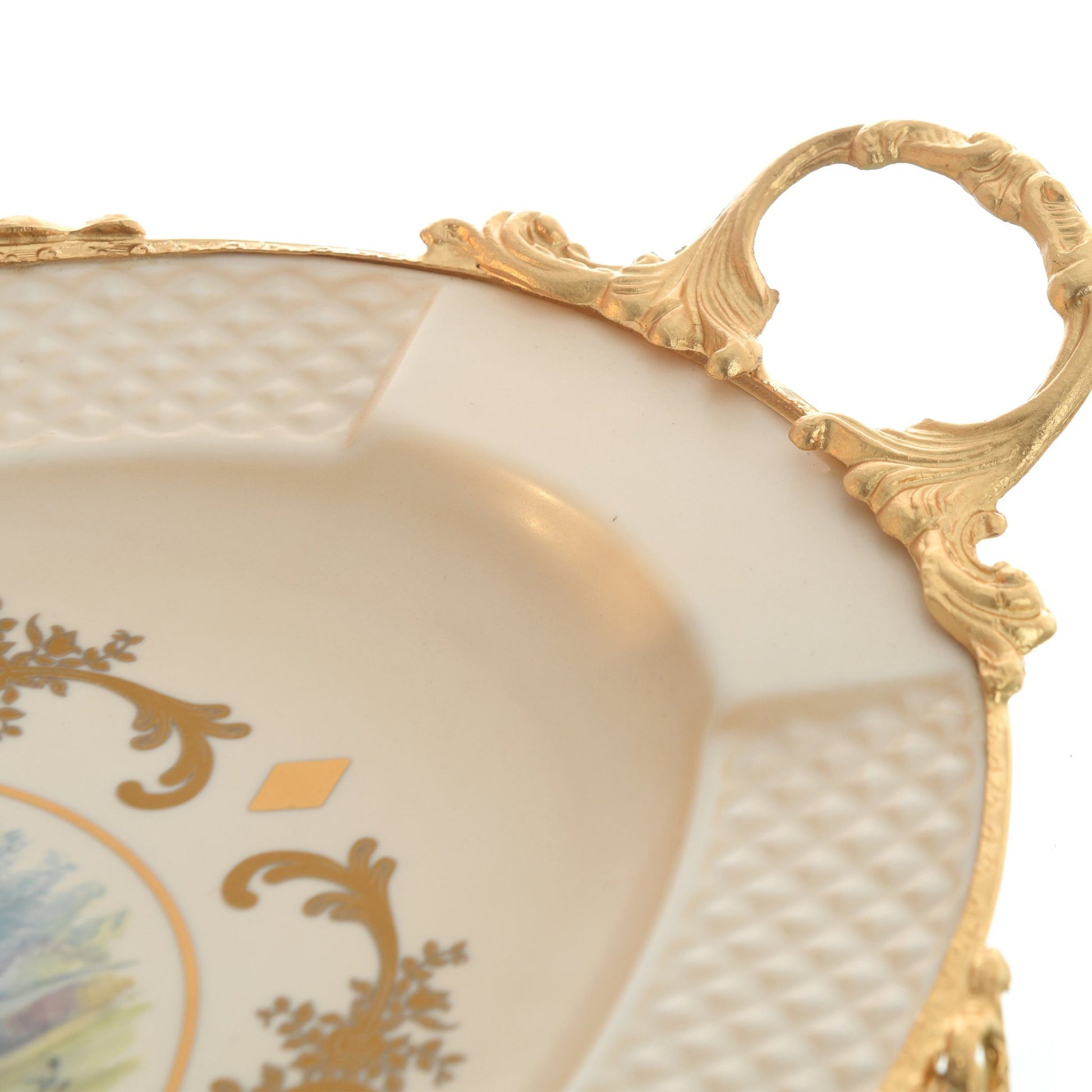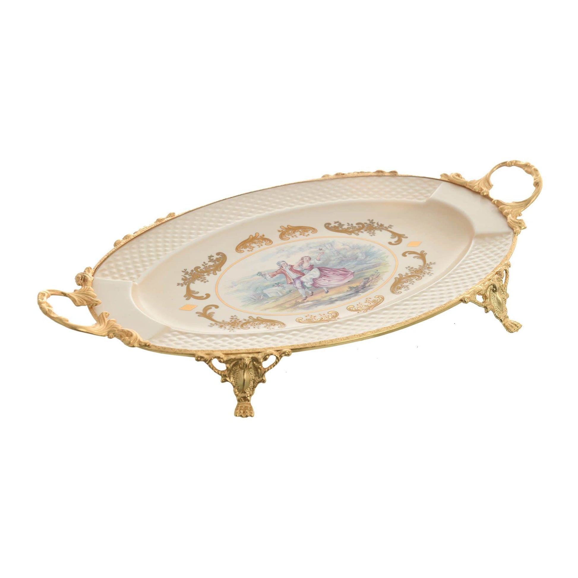 Item: Oval Tray with Gold Plated Handles & Legs - Romeo & Juliet - Beige & Gold