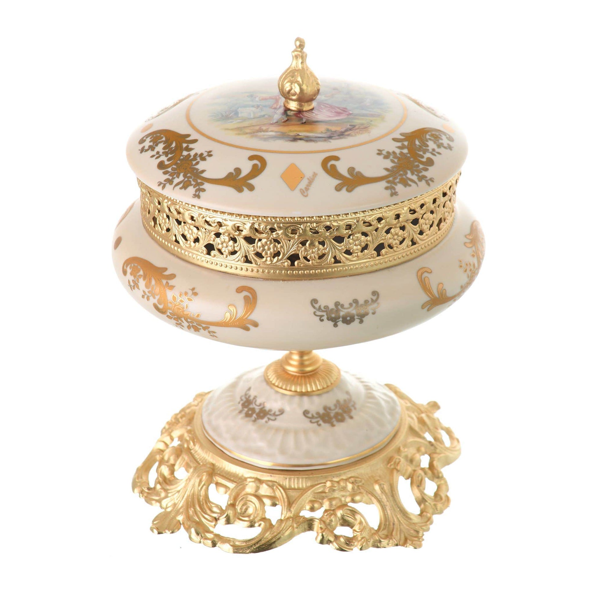 Item: Round Box with Base - Romeo & Juliet - Beige & Gold