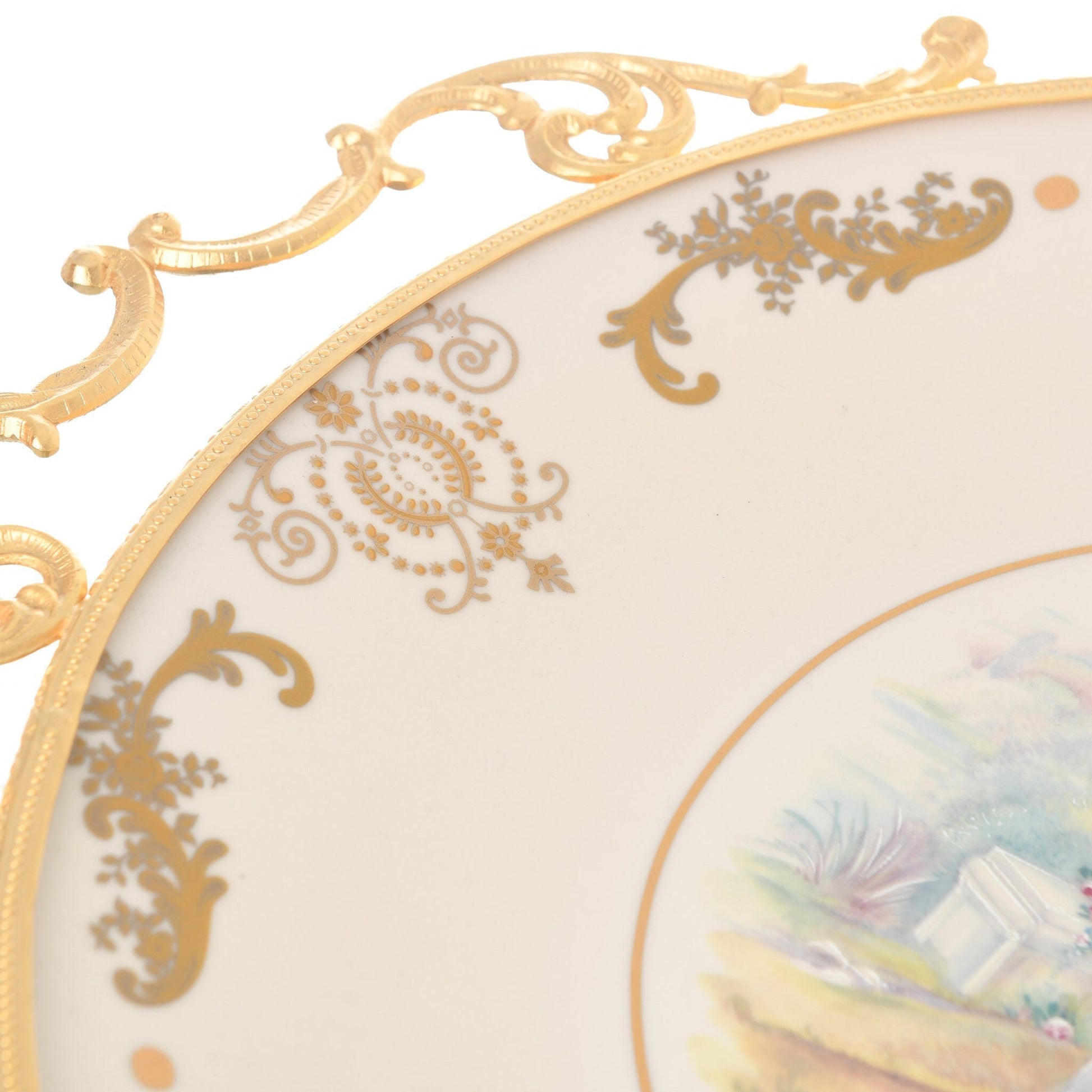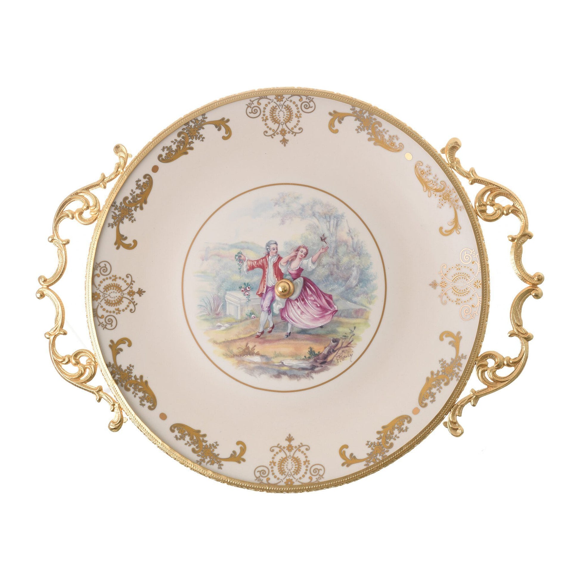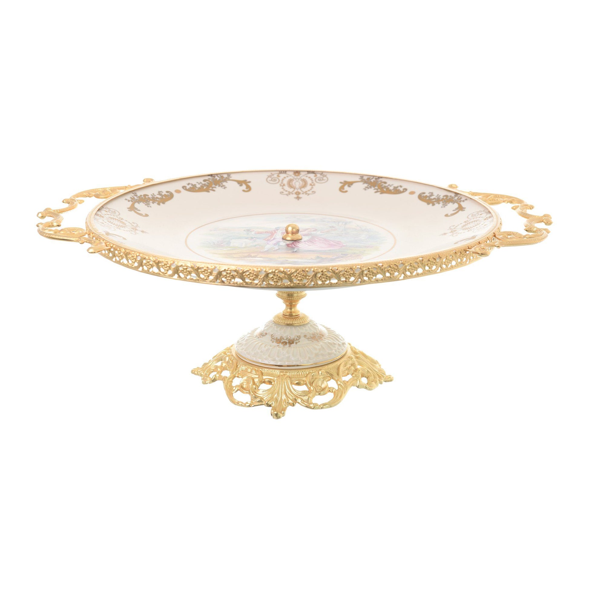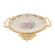 Caroline - Round Plate with Base & Gold Plated Handles - Romeo & Juliet - Beige & Gold - 40x50cm