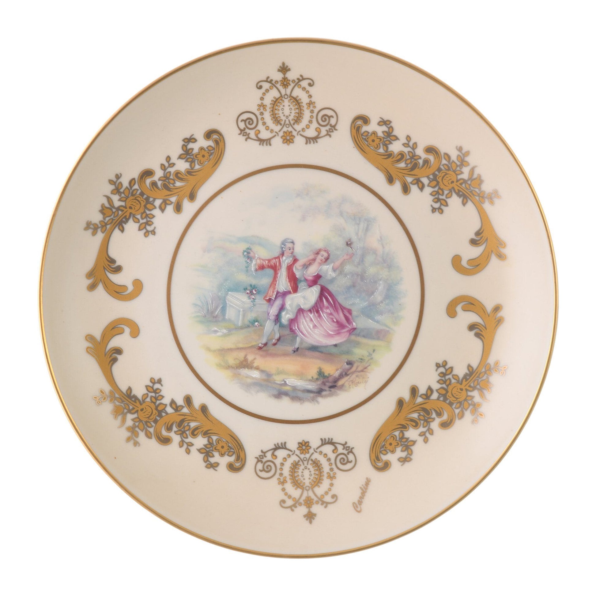 Item: Round Plate with Base - Romeo & Juliet - Beige & Gold