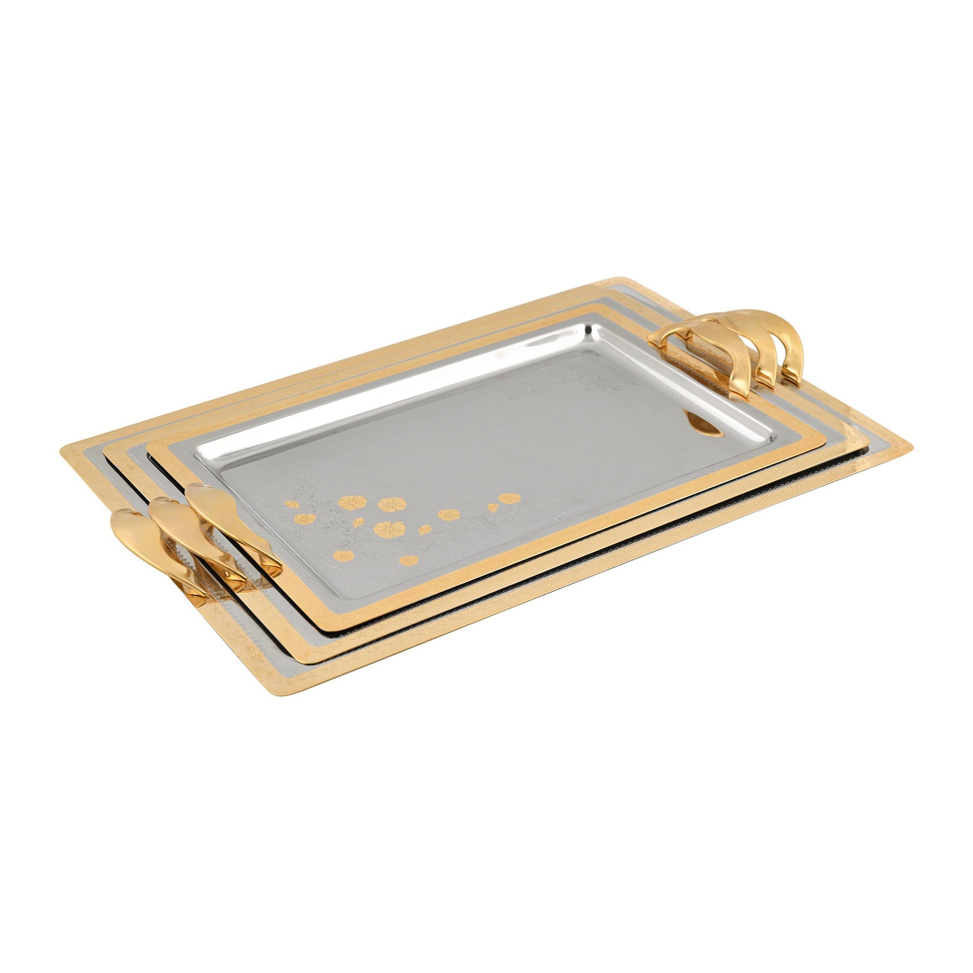 Item: Rectangular Tray Set with Handles 3 Pieces - Gold