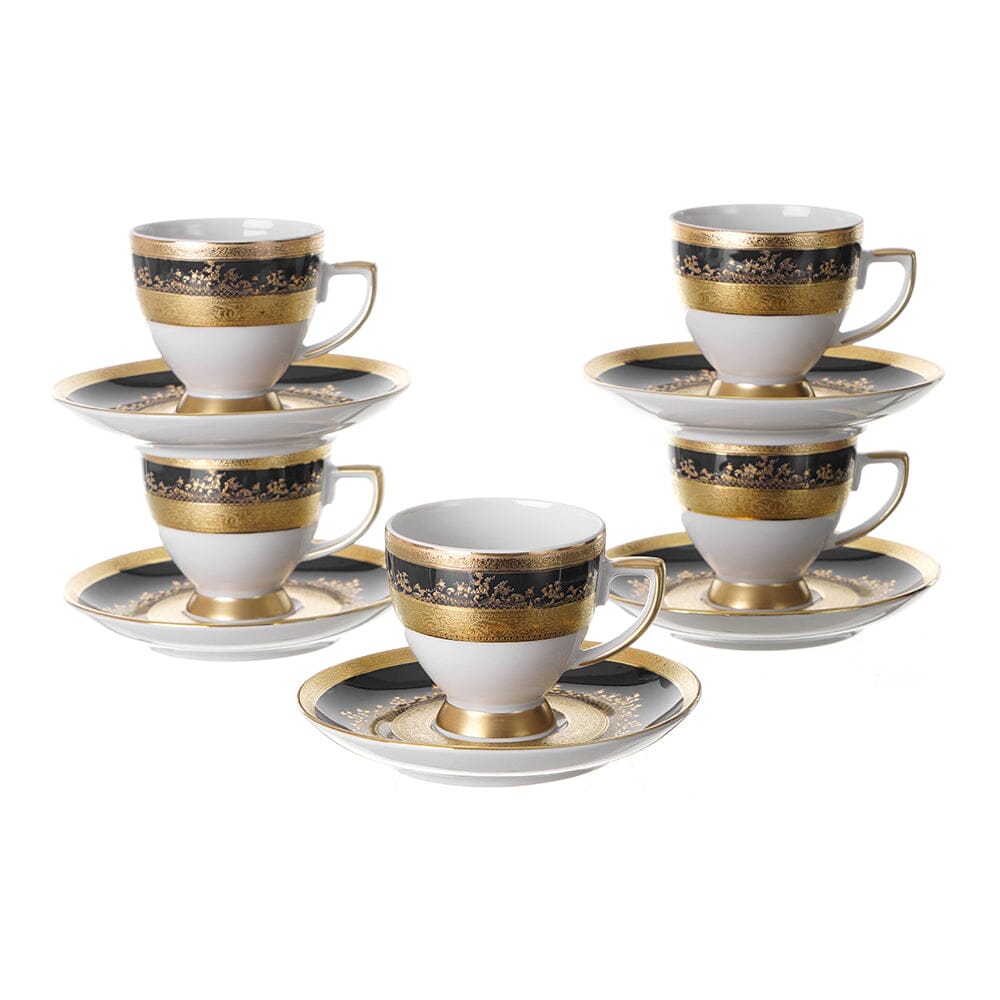 Falkenporzellan - Dinner Set 112 Pieces - Porcelain - Black & Gold