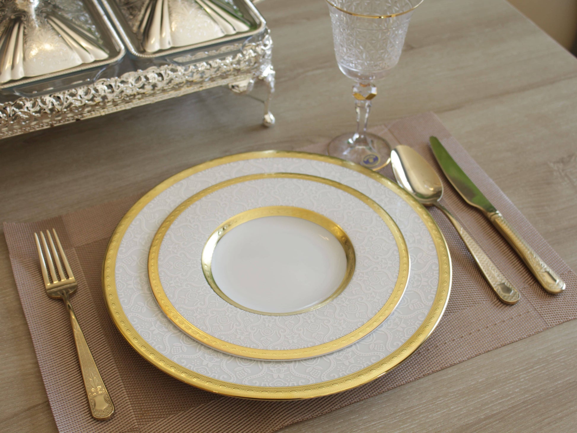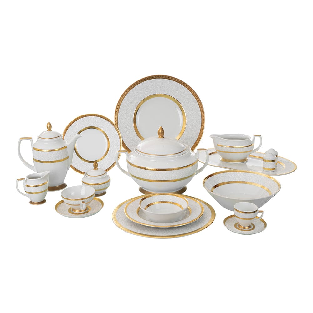 Falkenporzellan - Diamond Dinner Set 112 Pieces - White & Gold - Porcelain
