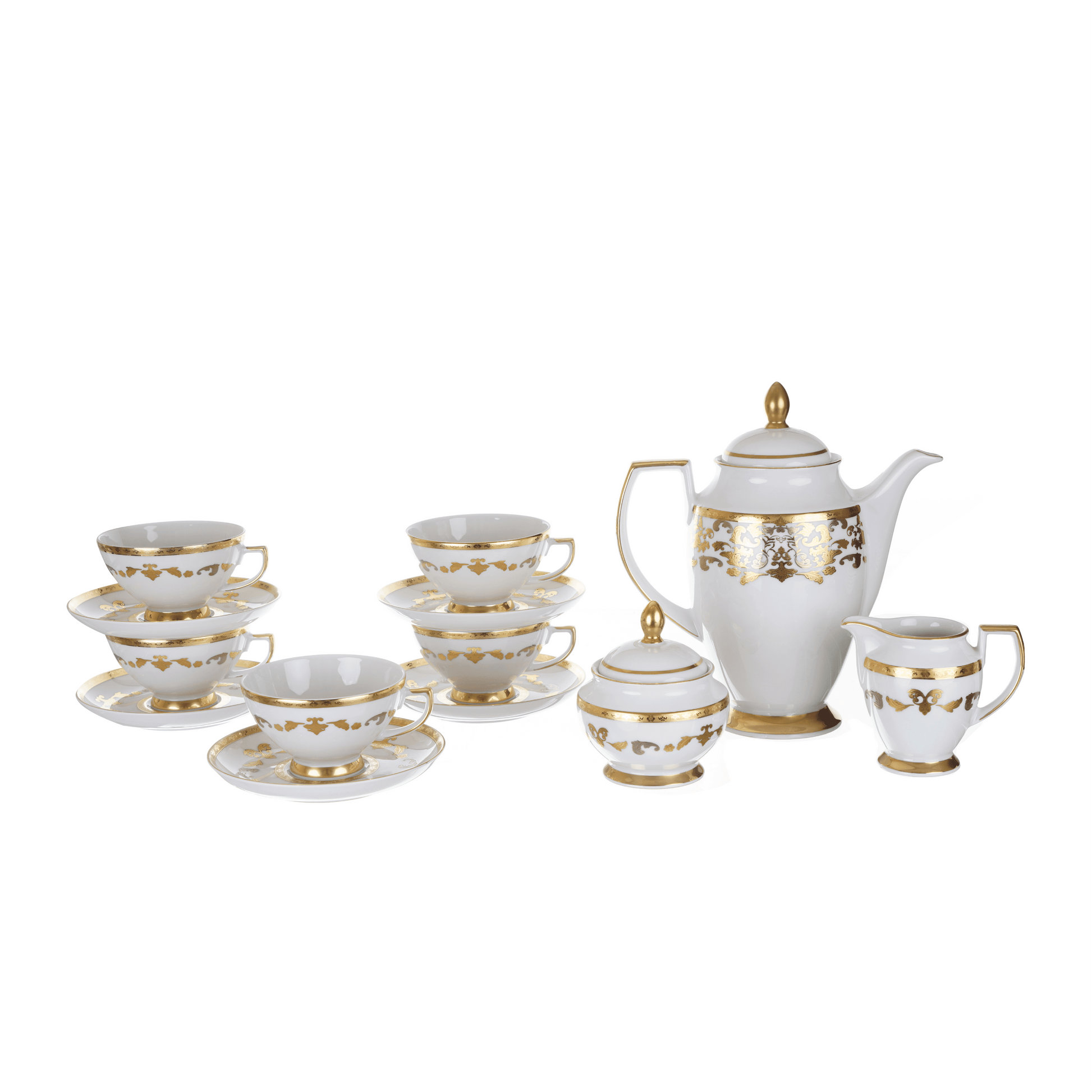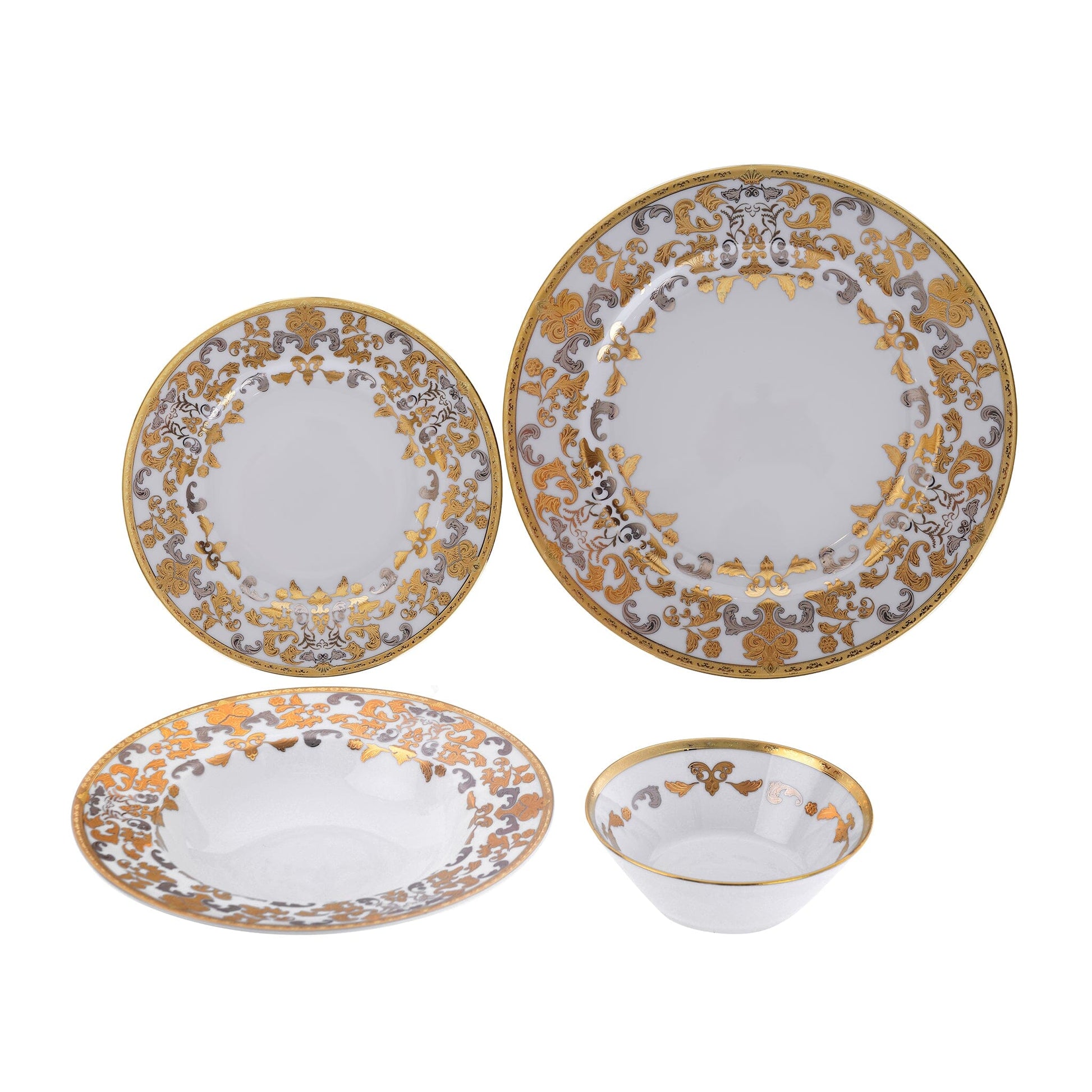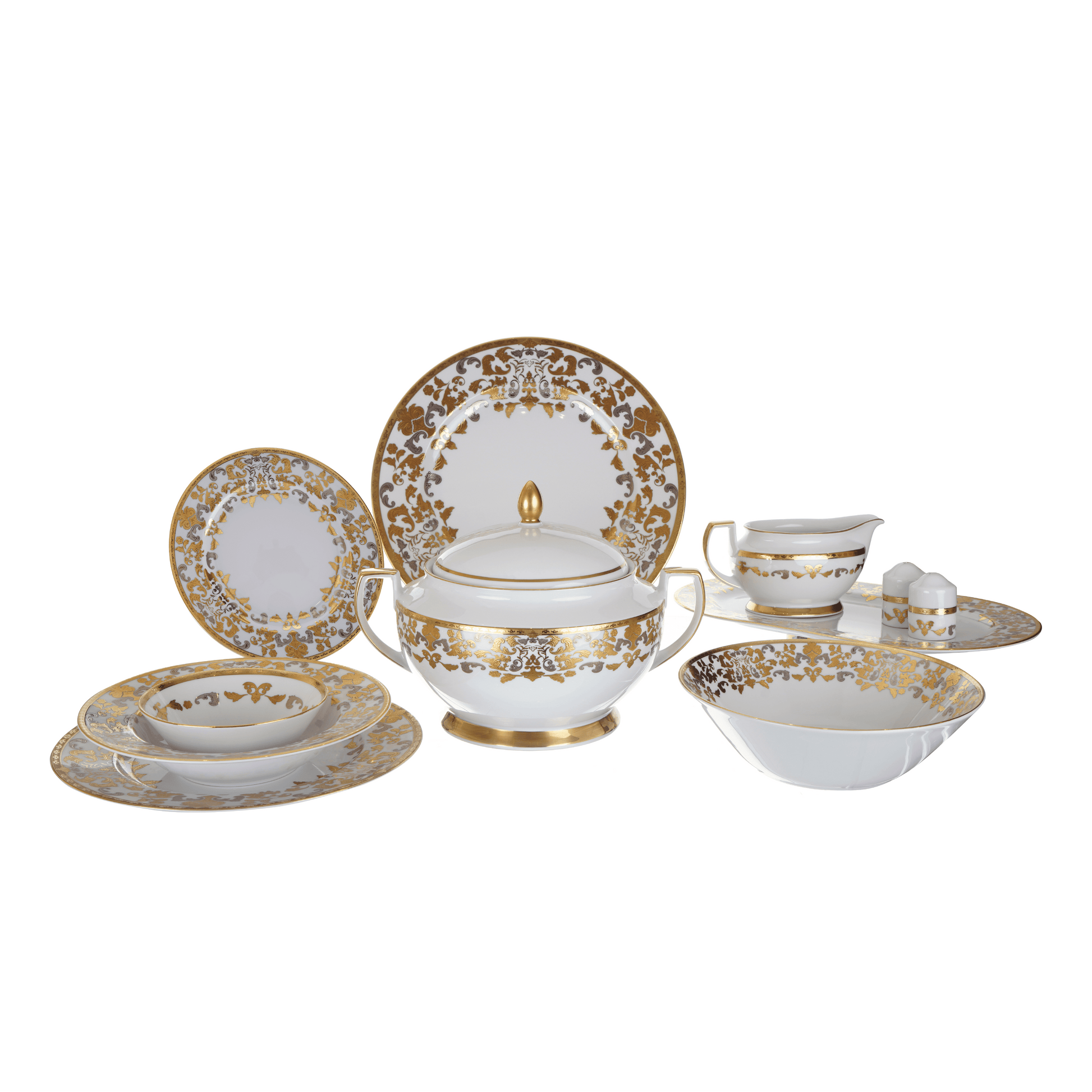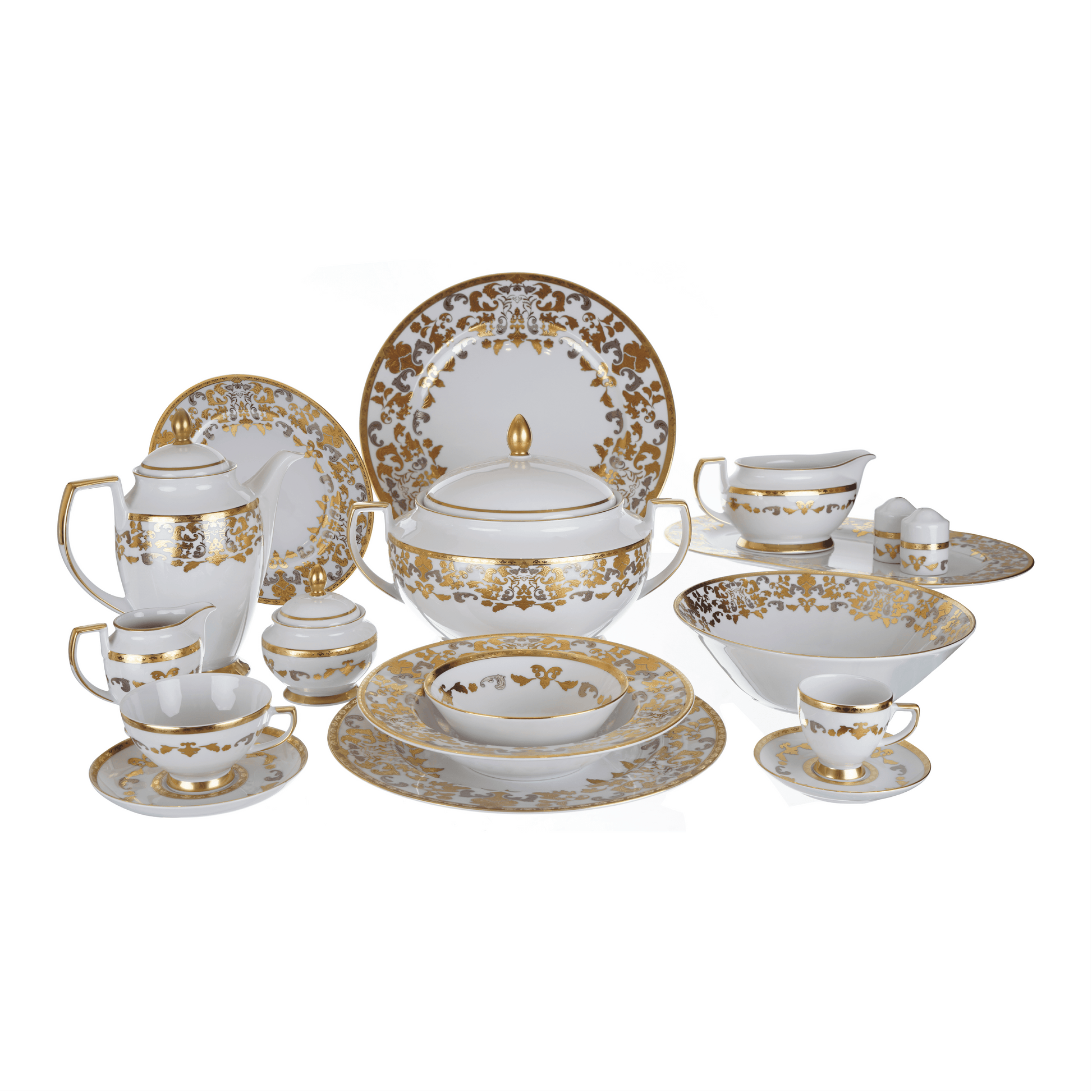 Falkenporzellan - Dinner Set 112 Pieces - Porcelain - Silver & Gold