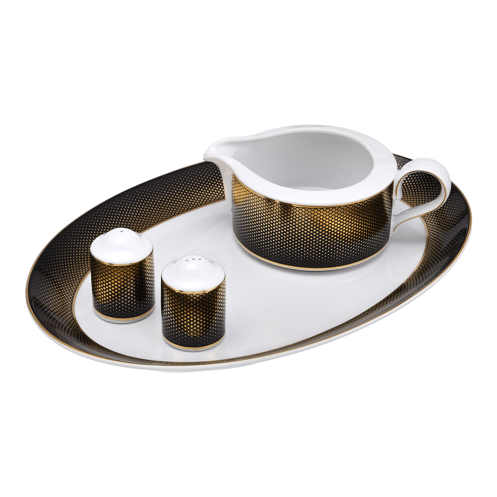 Falkenporzellan - Dinner Set 59 Pieces - Black Dotted & Gold - Porcelain