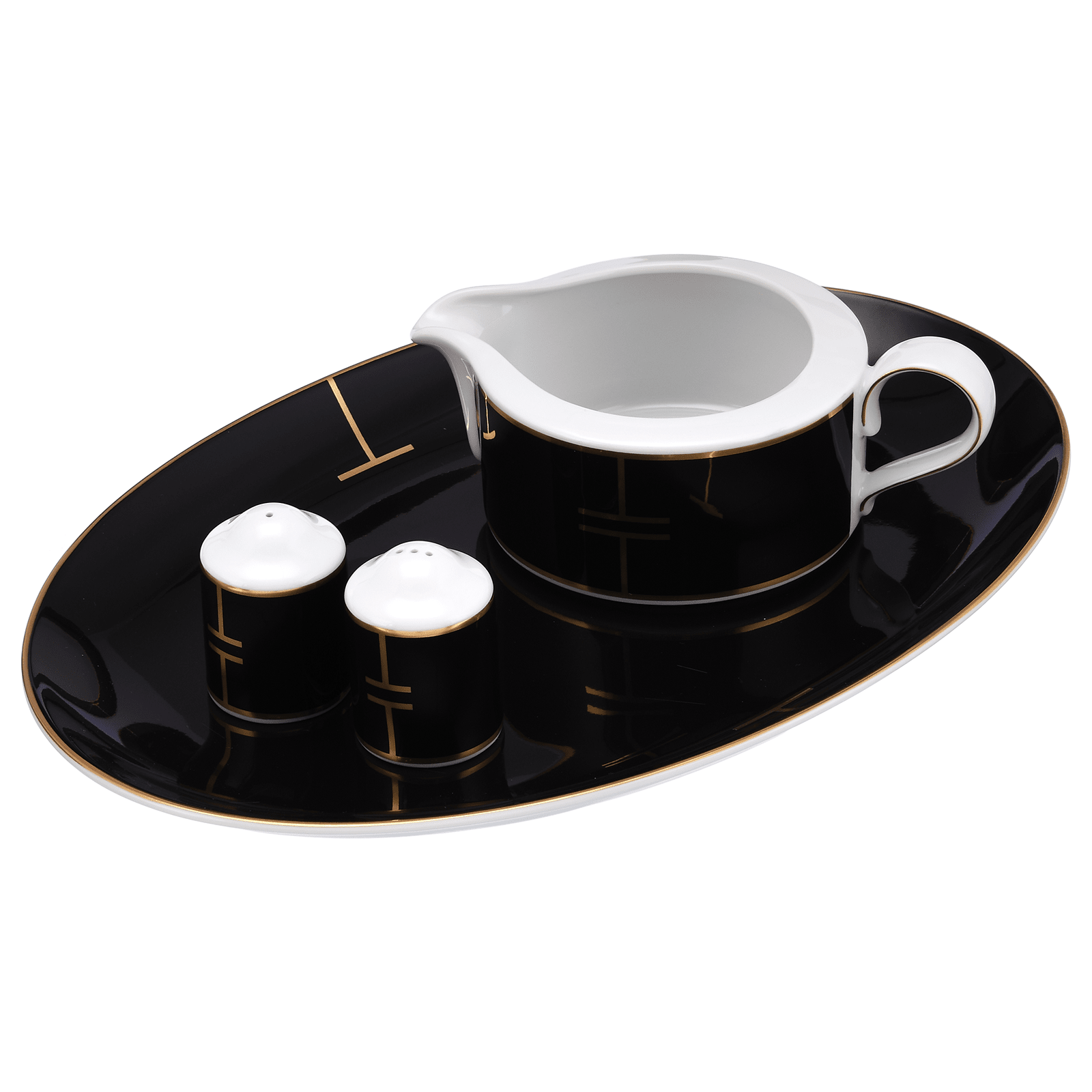 Falkenporzellan - Dinner Set 59 Pieces - Black Gold - Porcelain
