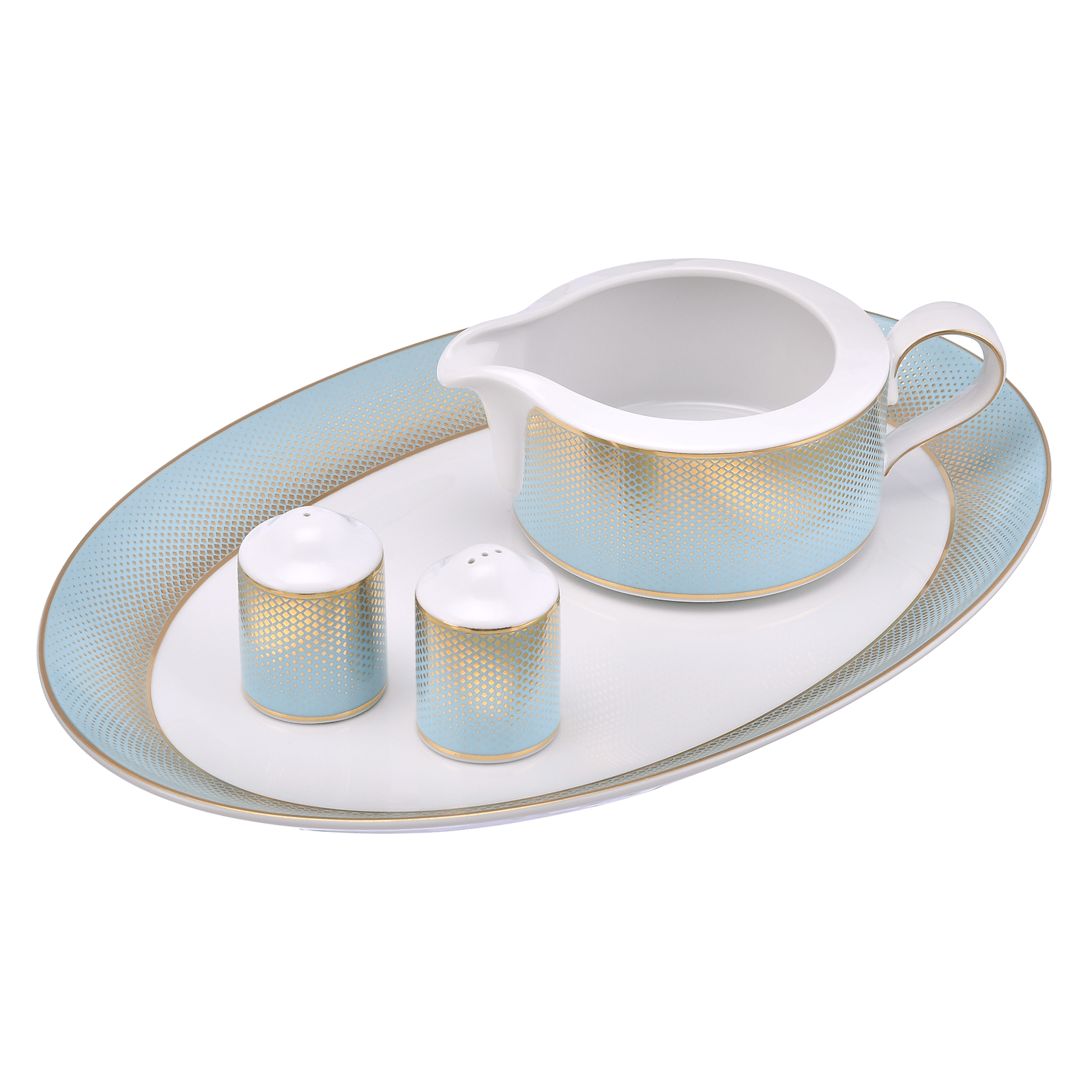 Item: Dinner Set 59 Pieces Blue with Gold dots
