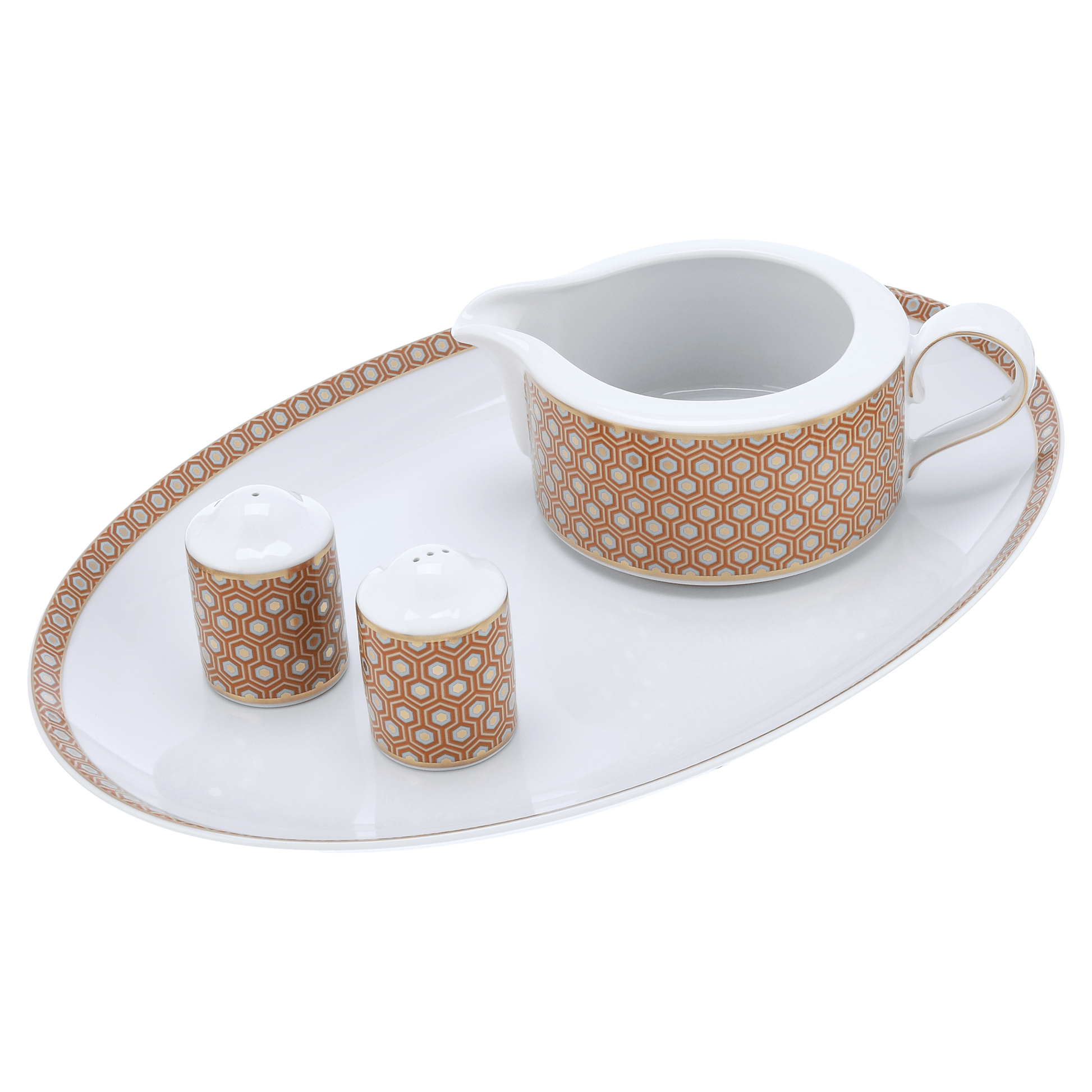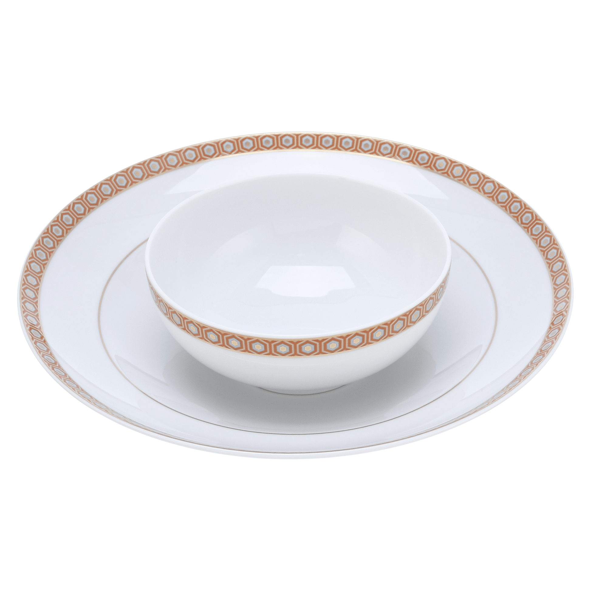 Item: Dinner Set 59 Pieces - Orange, Gold & Blue