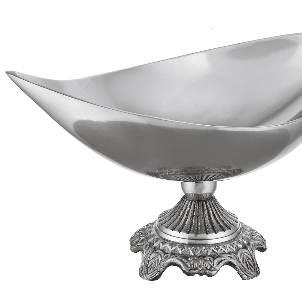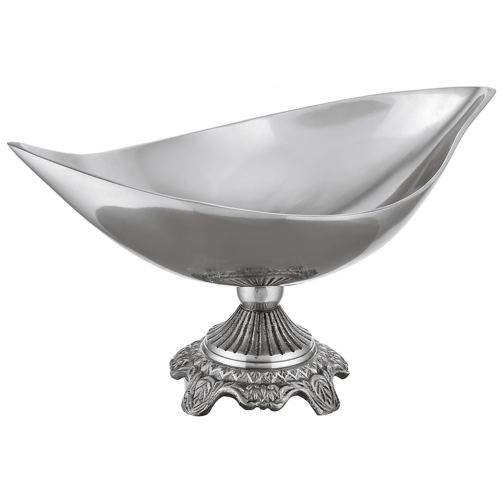 Oval Shaped Platter with Base For Snacks & Fruits - Silver - Silver Plated Metal