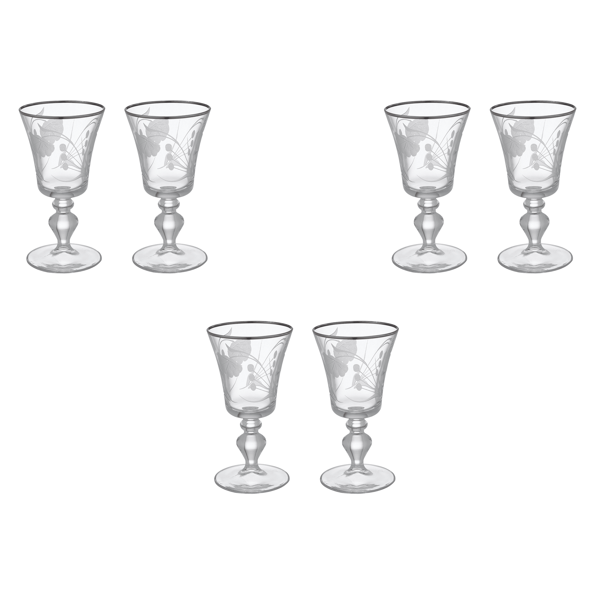 Item: Decorated Goblet Glass Set 6 Pieces with Silver rim