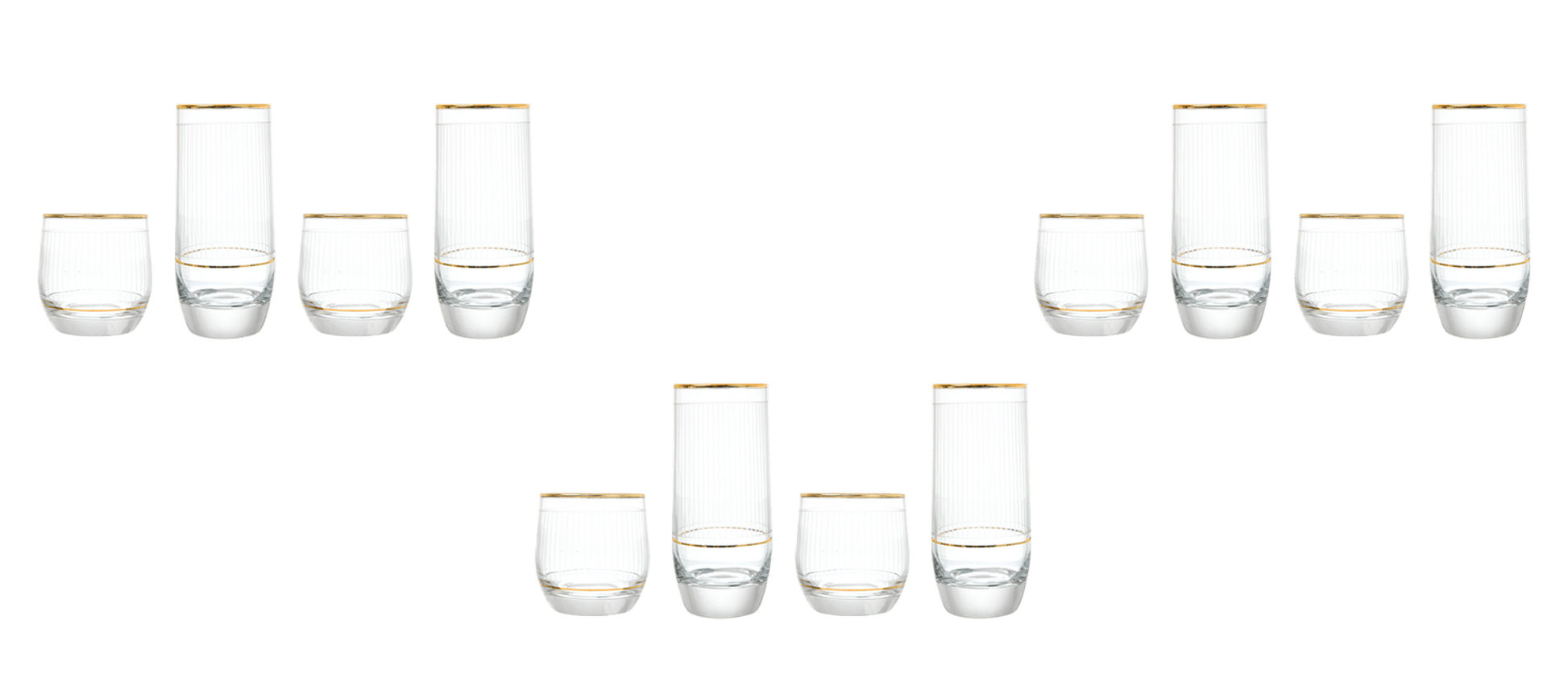 Item: Highball & Tumbler Glass Set 12 Pieces - Gold
