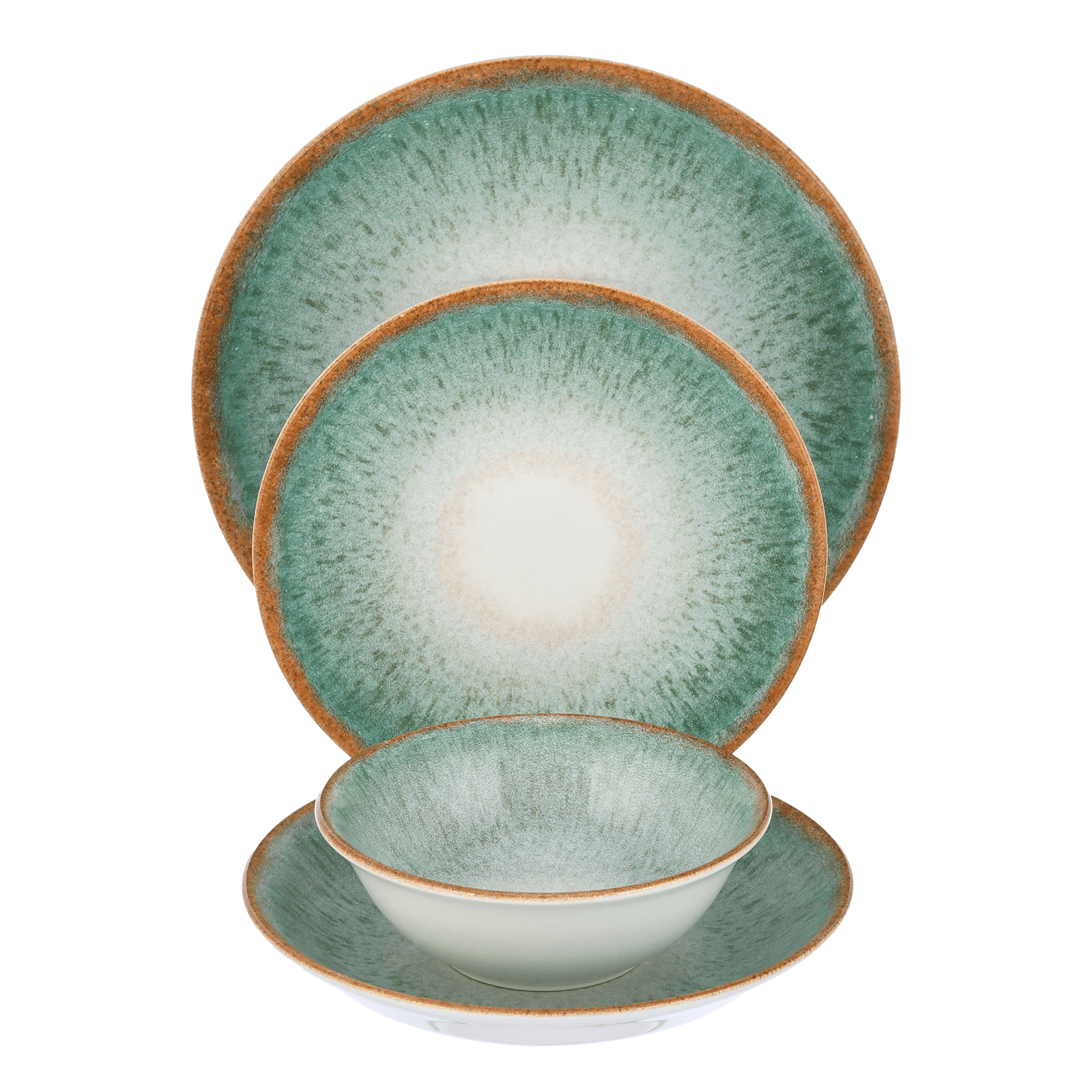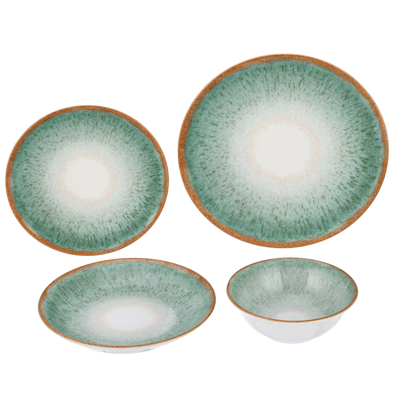 Potsalina - Daily Use Dinner Set 24 Pieces - Green & Brown - Porcelain
