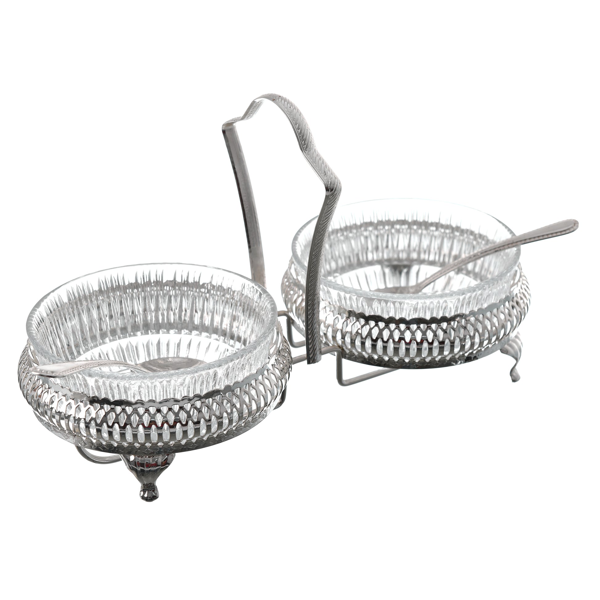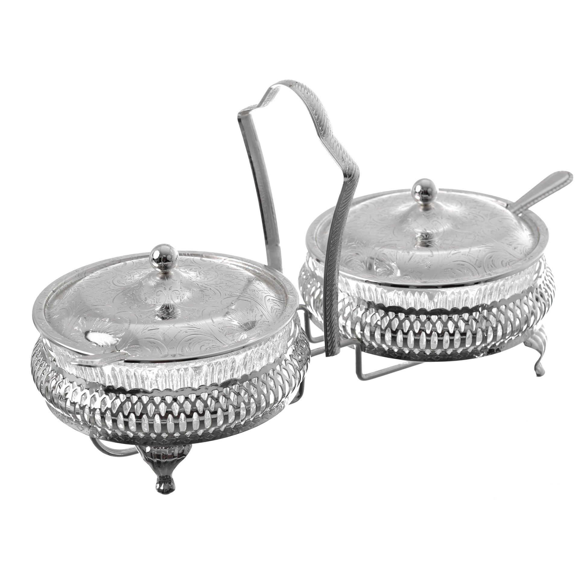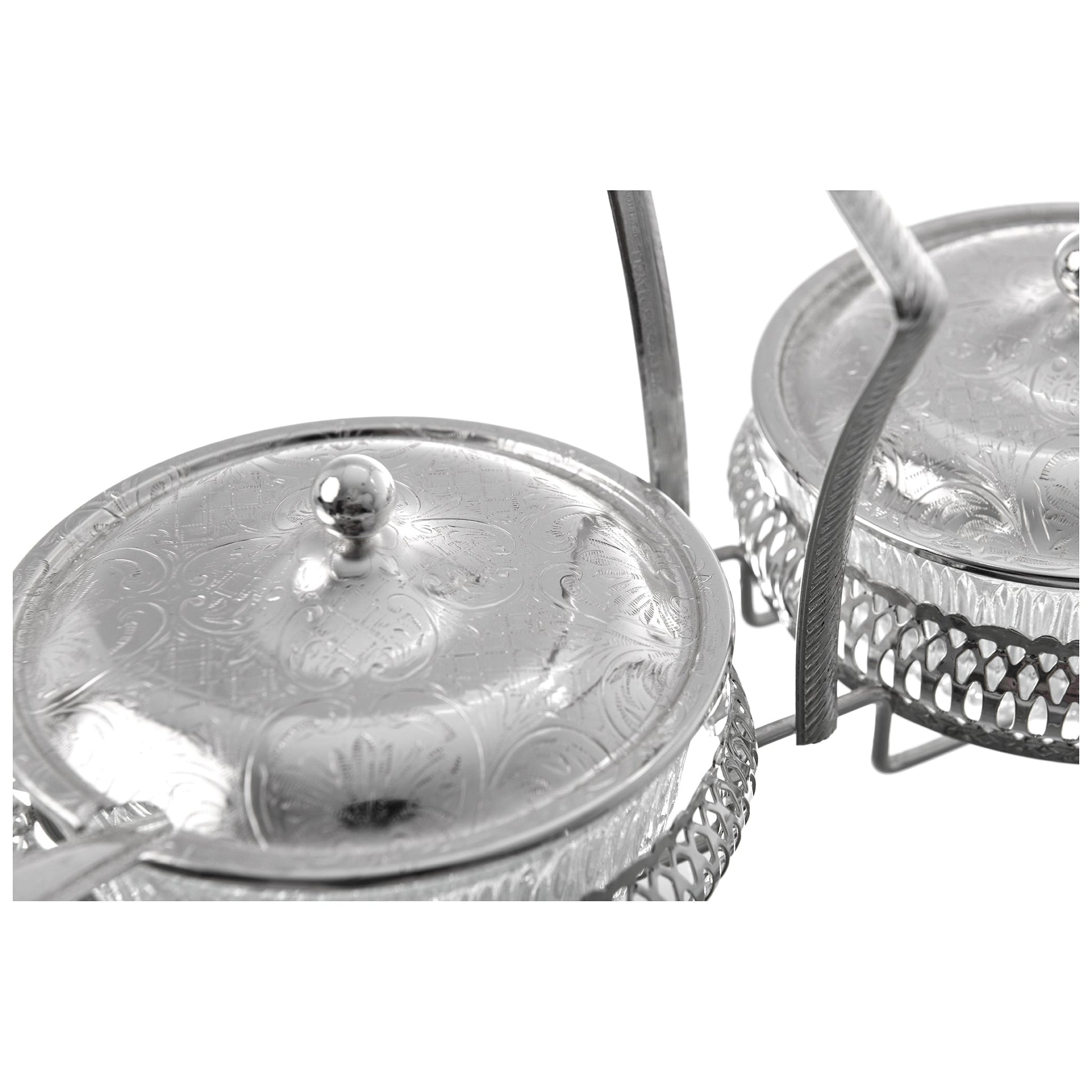 Item: Jam Bowl Set with Spoons & Cover & Silver Plated Stand 2 Pieces