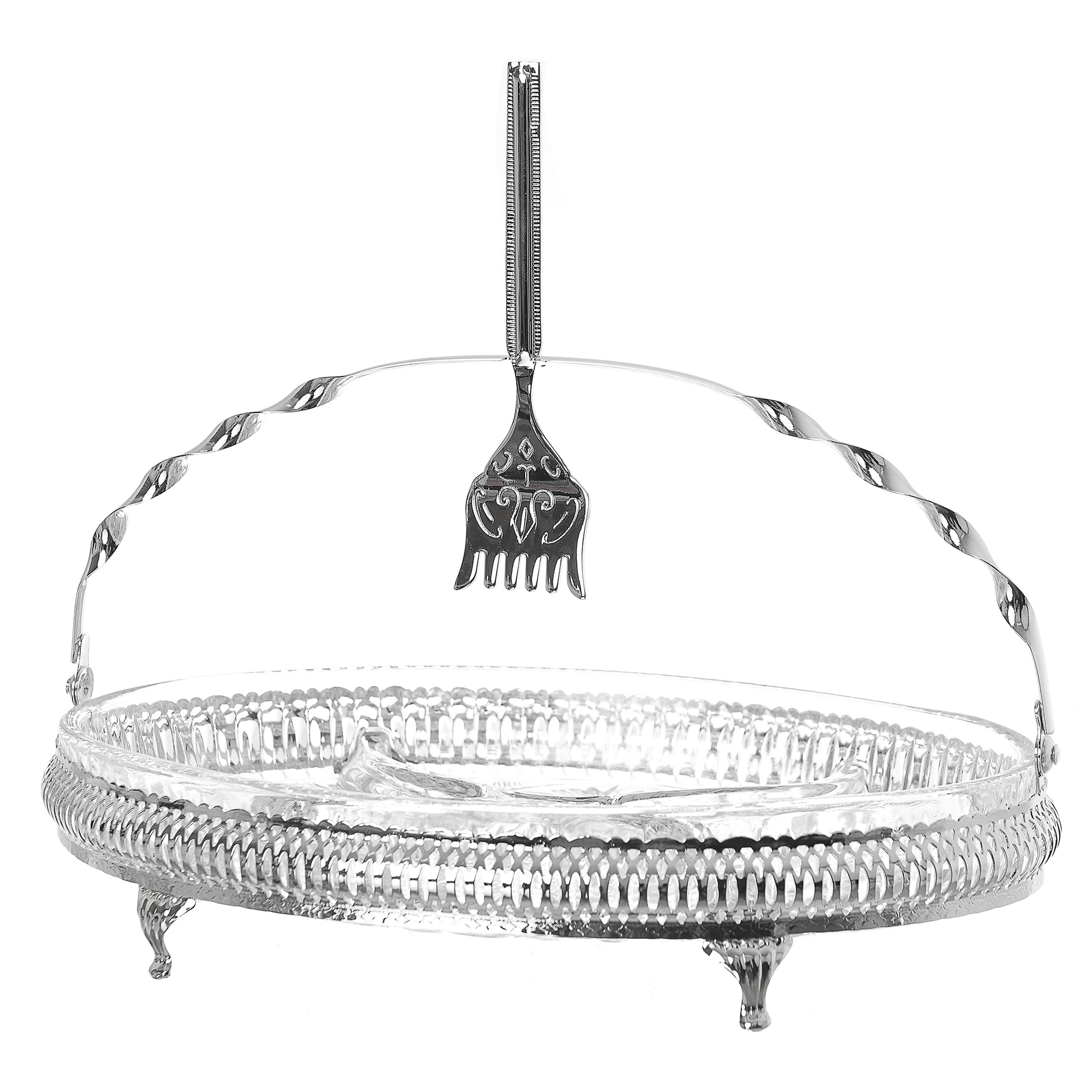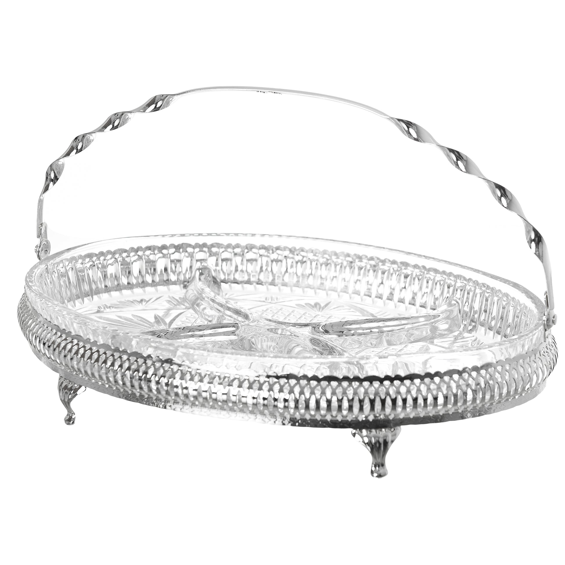 Queen Anne - Oval Hors d'oeuvre 4 Parts with 1 Serving Fork - Silver Plated Metal & Glass - 29x20cm