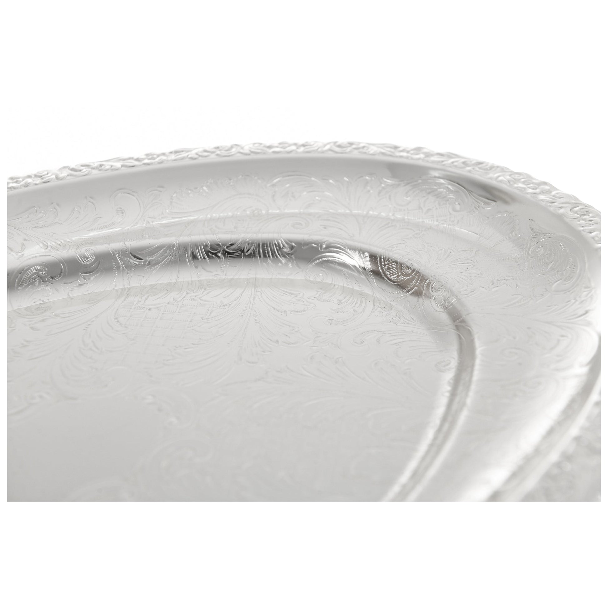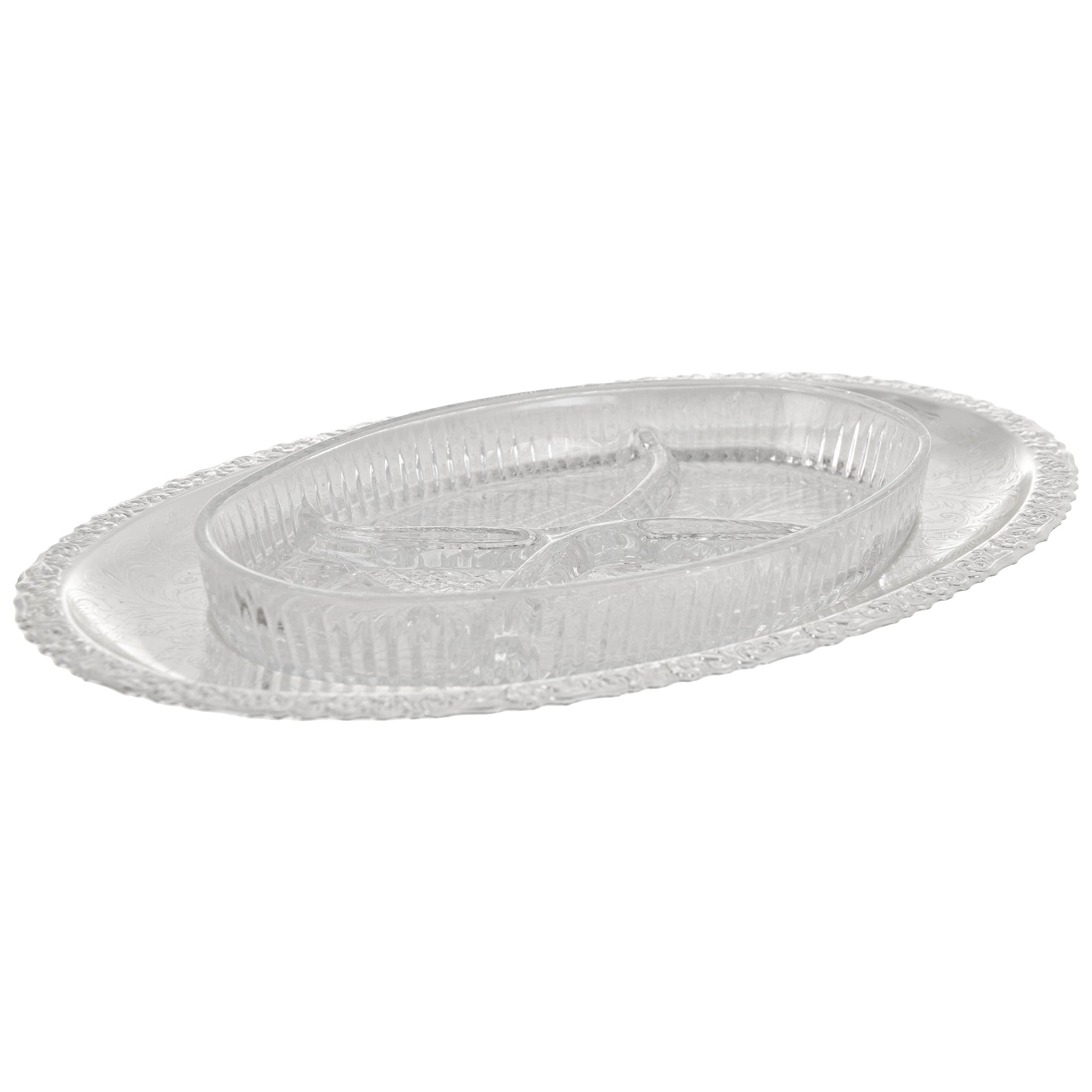 Queen Anne - Oval Hors d'oeuvre 4 Parts with Tray - Silver Plated Metal & Glass - 31x20cm