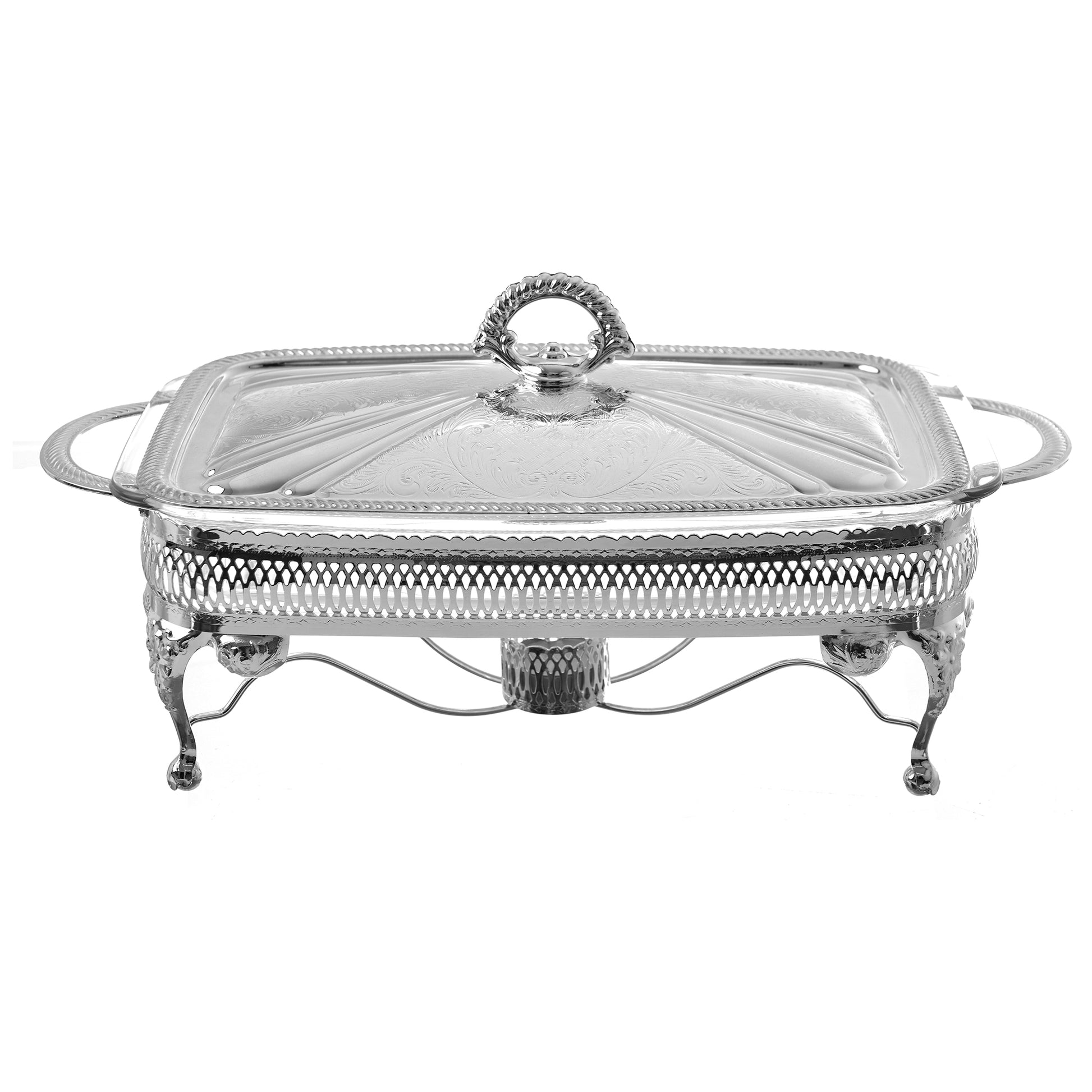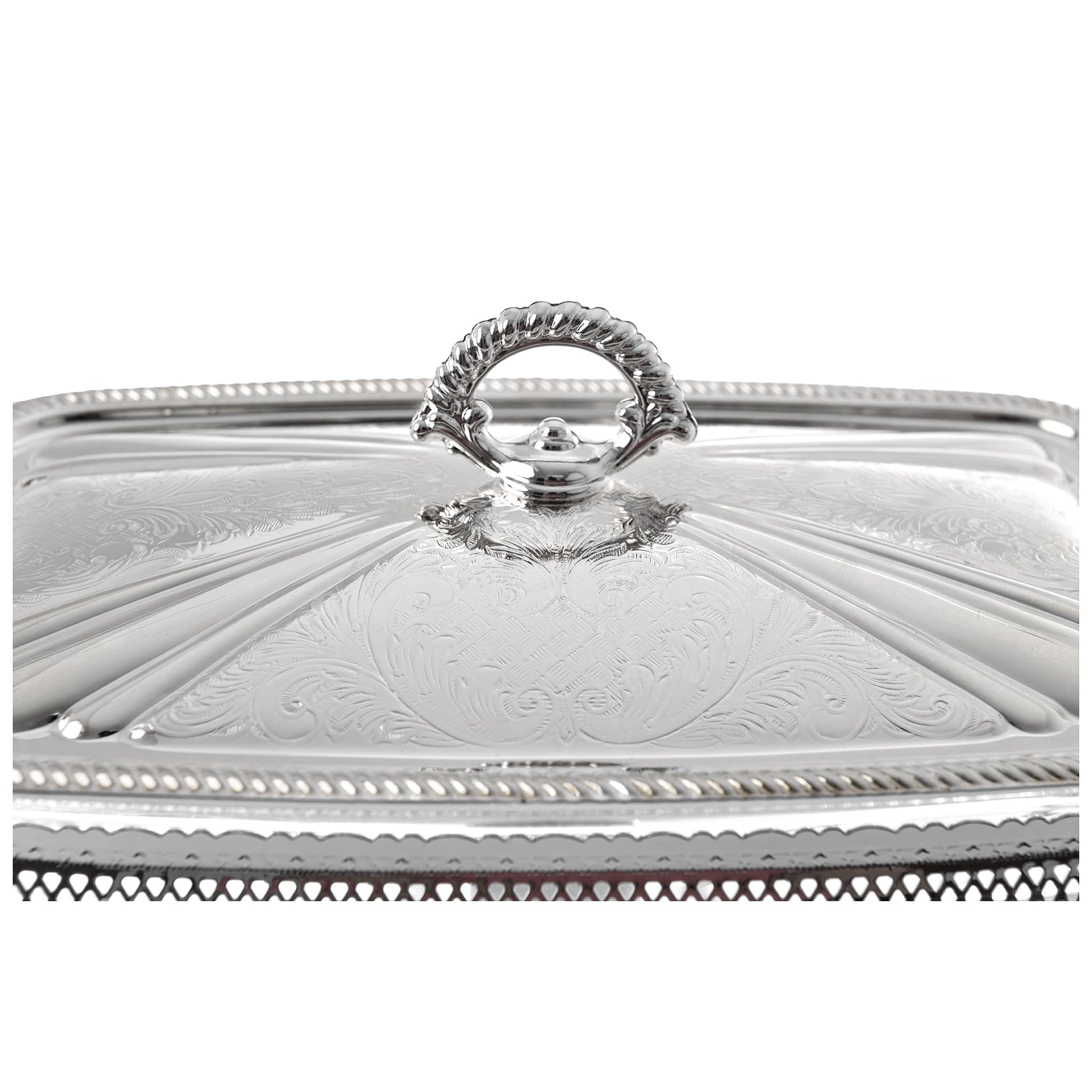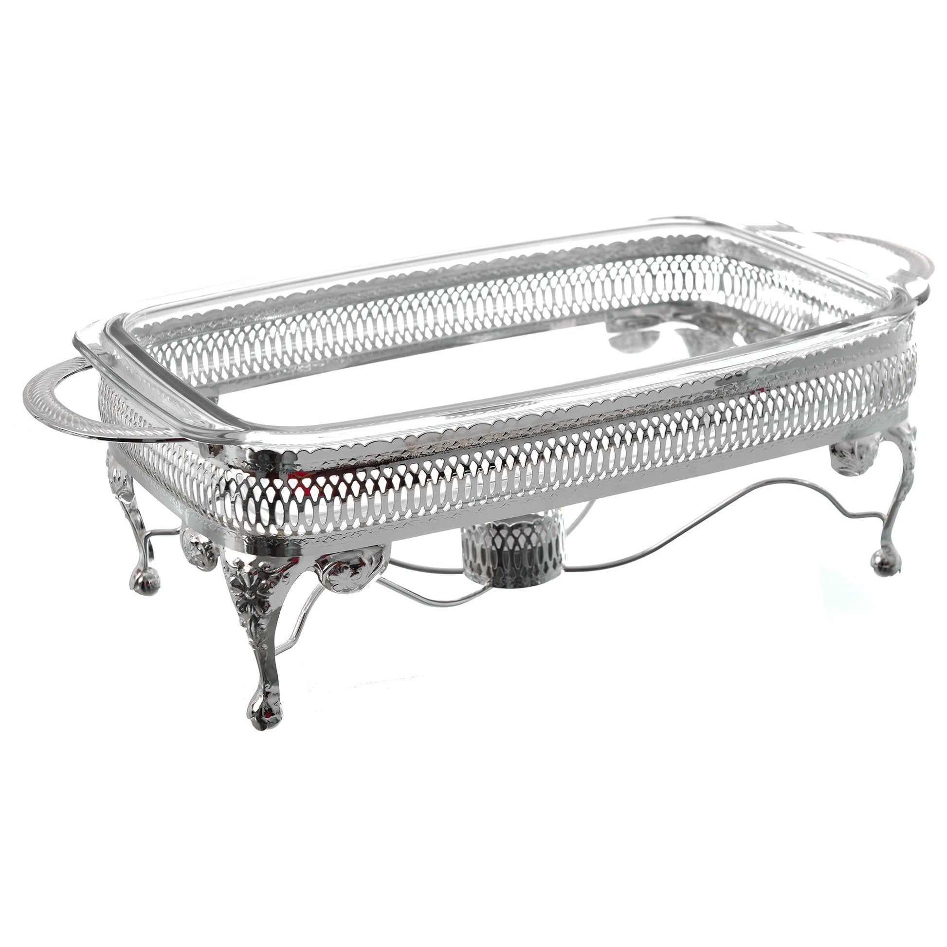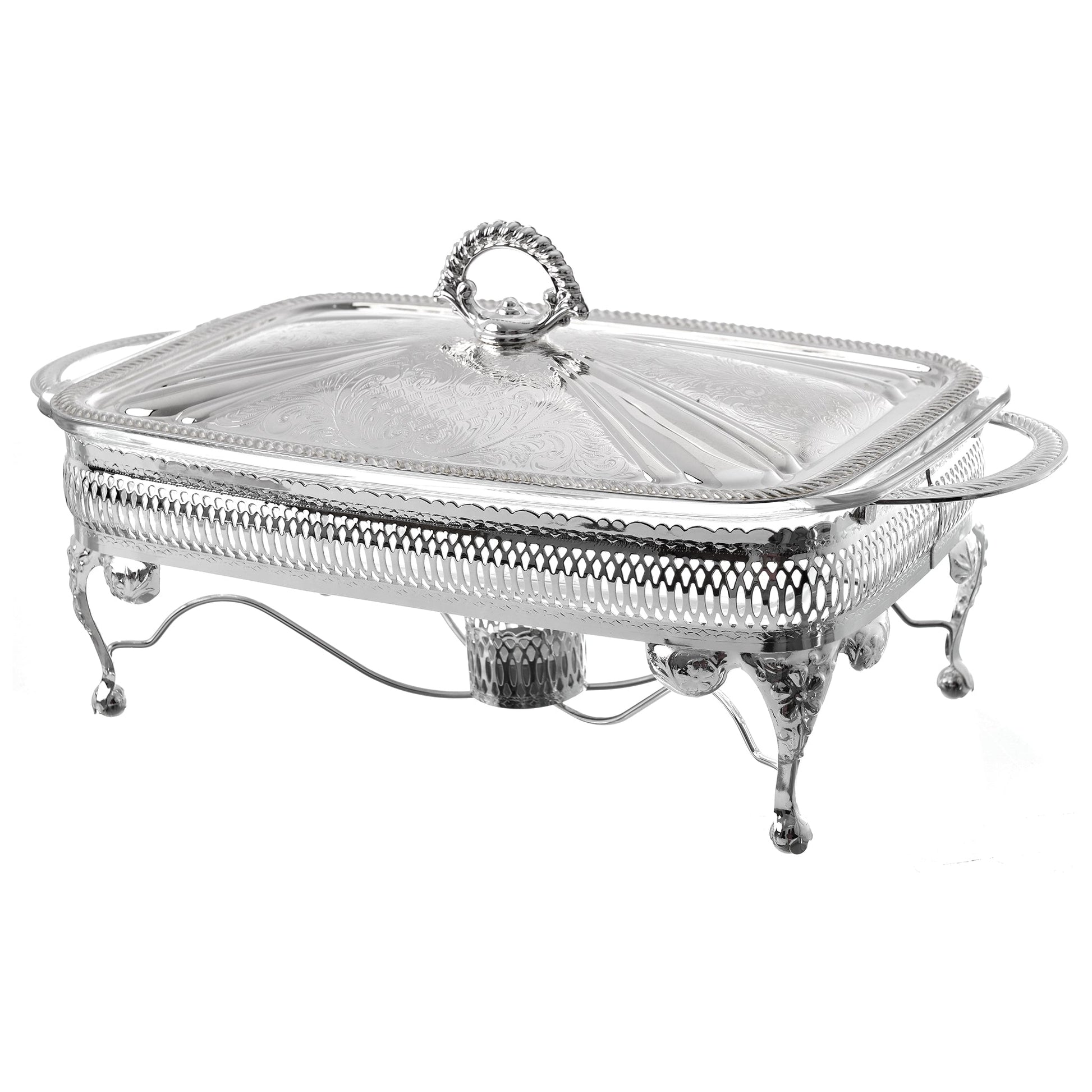 Queen Anne - Rectangular Food Warmer With Handles & Glass - Silver Plated Metal - 38x20x18.5cm