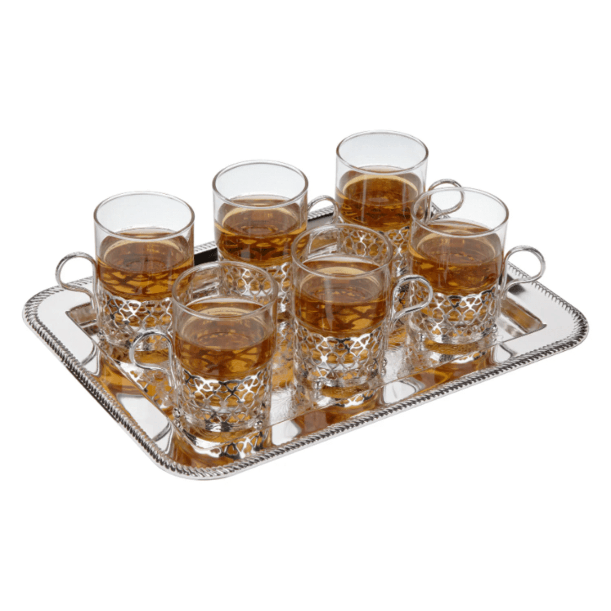 Queen Anne - Rectangular Tray With 6 Glasses - Silver