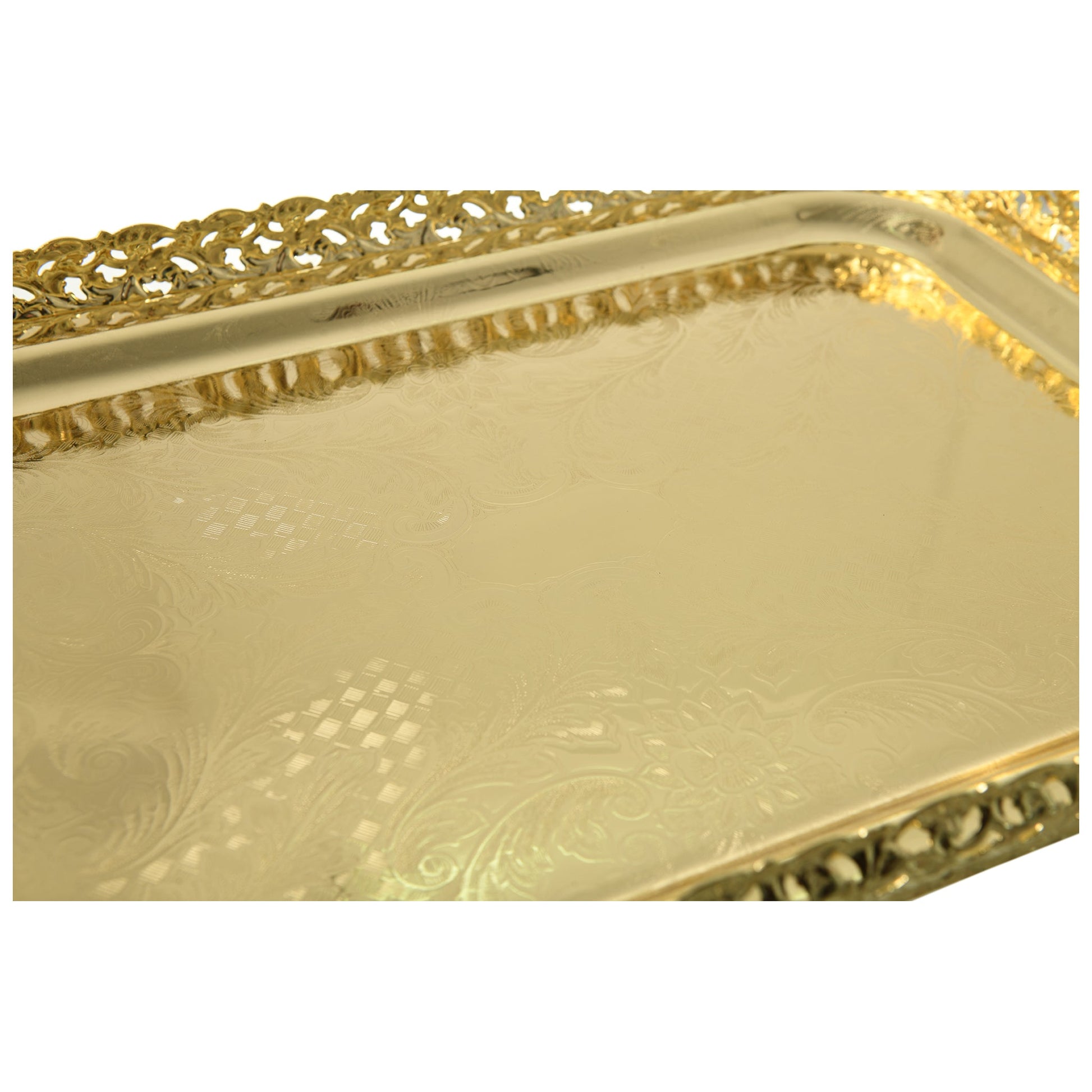 Queen Anne - Rectangular Tray with Handles - Gold - Gold Plated Metal - 51.5x29cm