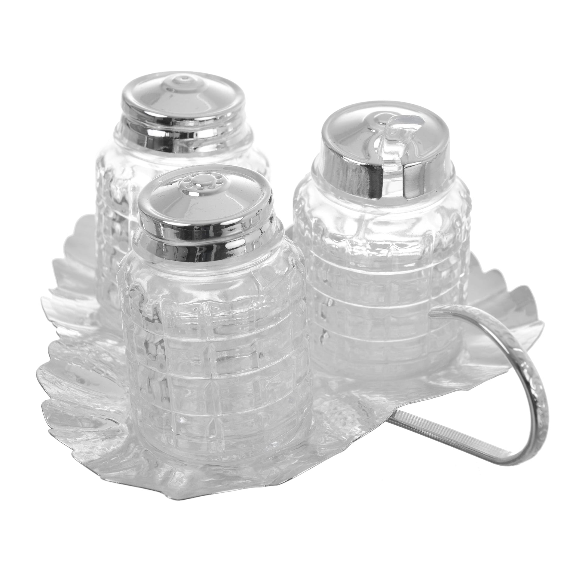 Queen Anne - Leaf Design Base with Side Handle 4 Pieces - Silver Plated Metal, Glass & Plastic