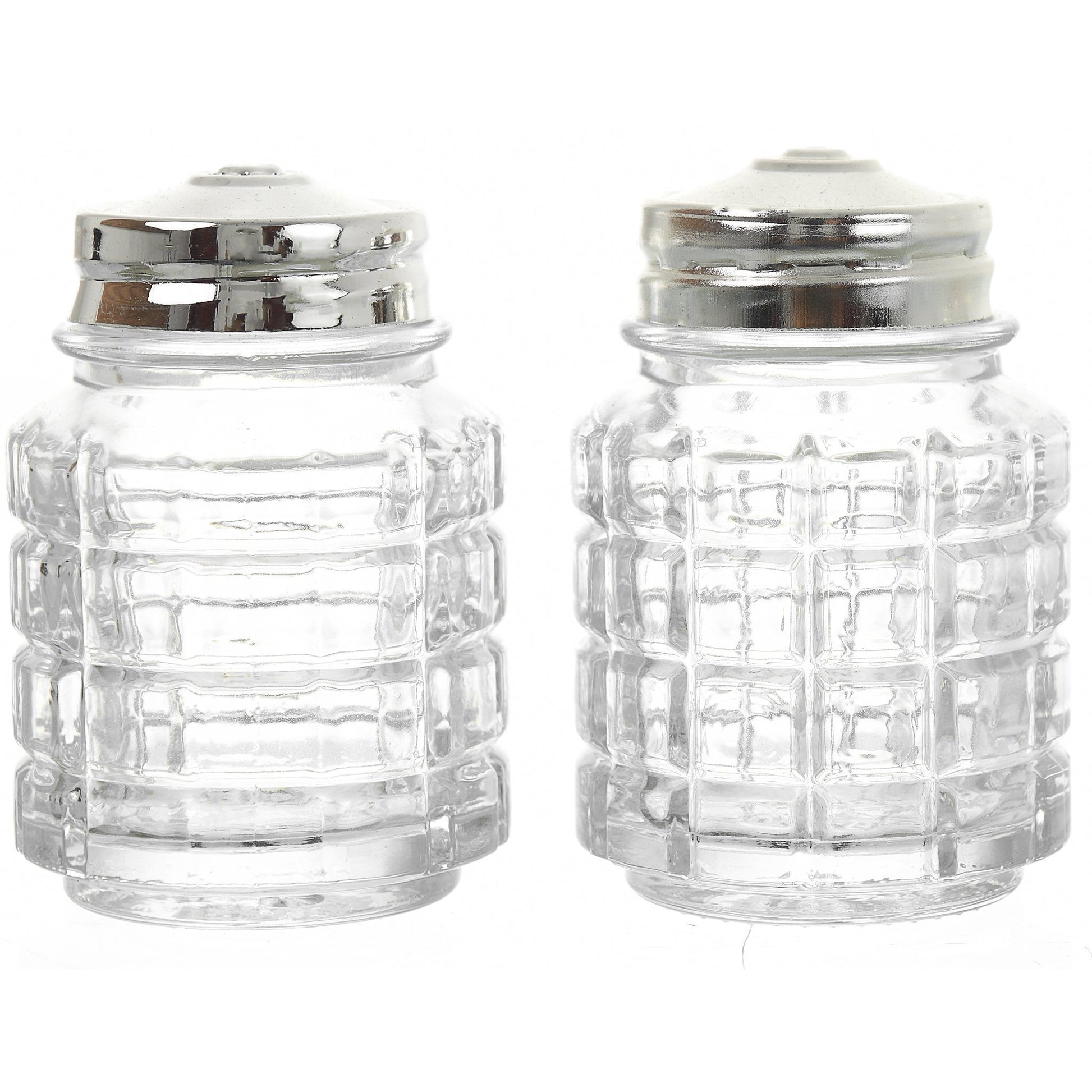 Queen Anne - Revolving Cruet Set 5 Pieces with Stand - Silver Plated Metal, Glass & Plastic