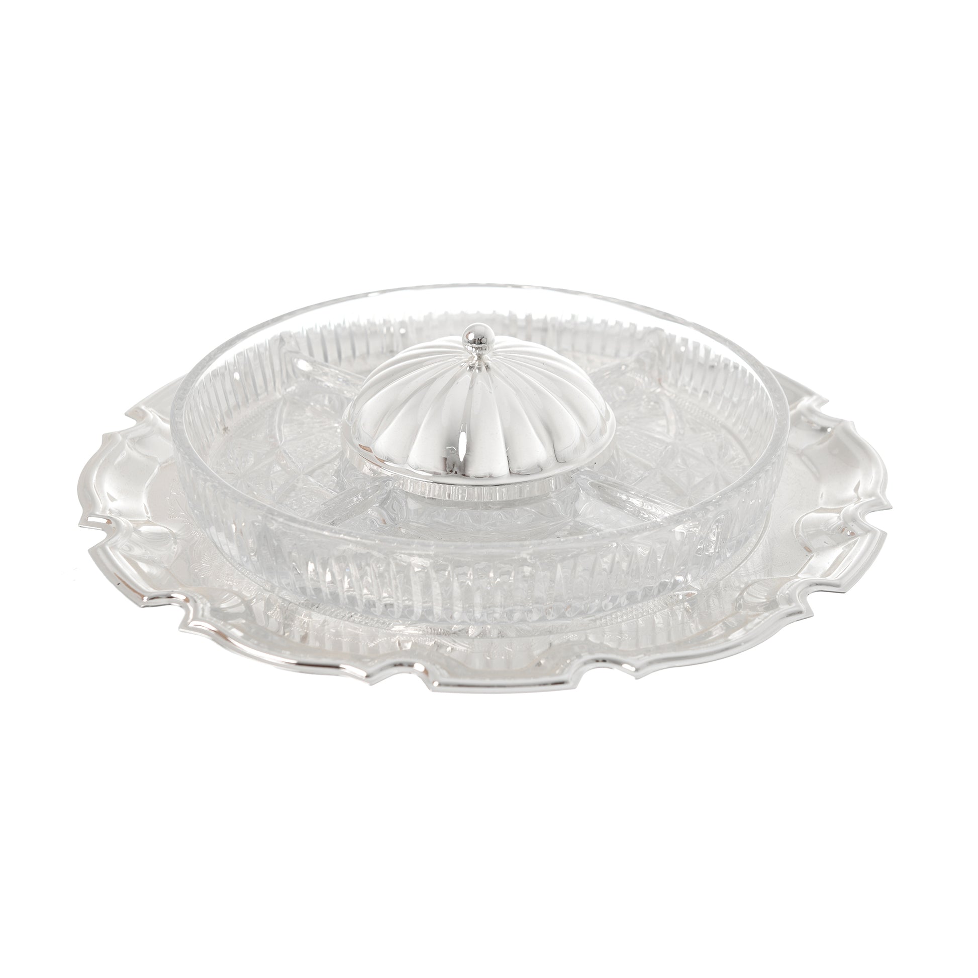 Queen Anne - Round Hors d'oeuvre 5 Parts with Silver Plated Center Cover & Tray - Silver Plated Metal & Glass - 25cm