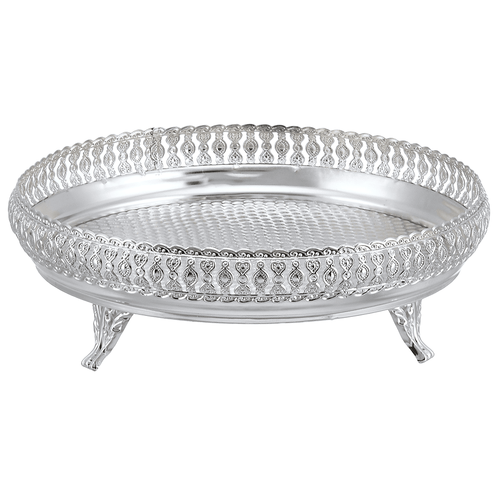 Round Tray with Feet - Silver - 23cm - Silver Plated Metal