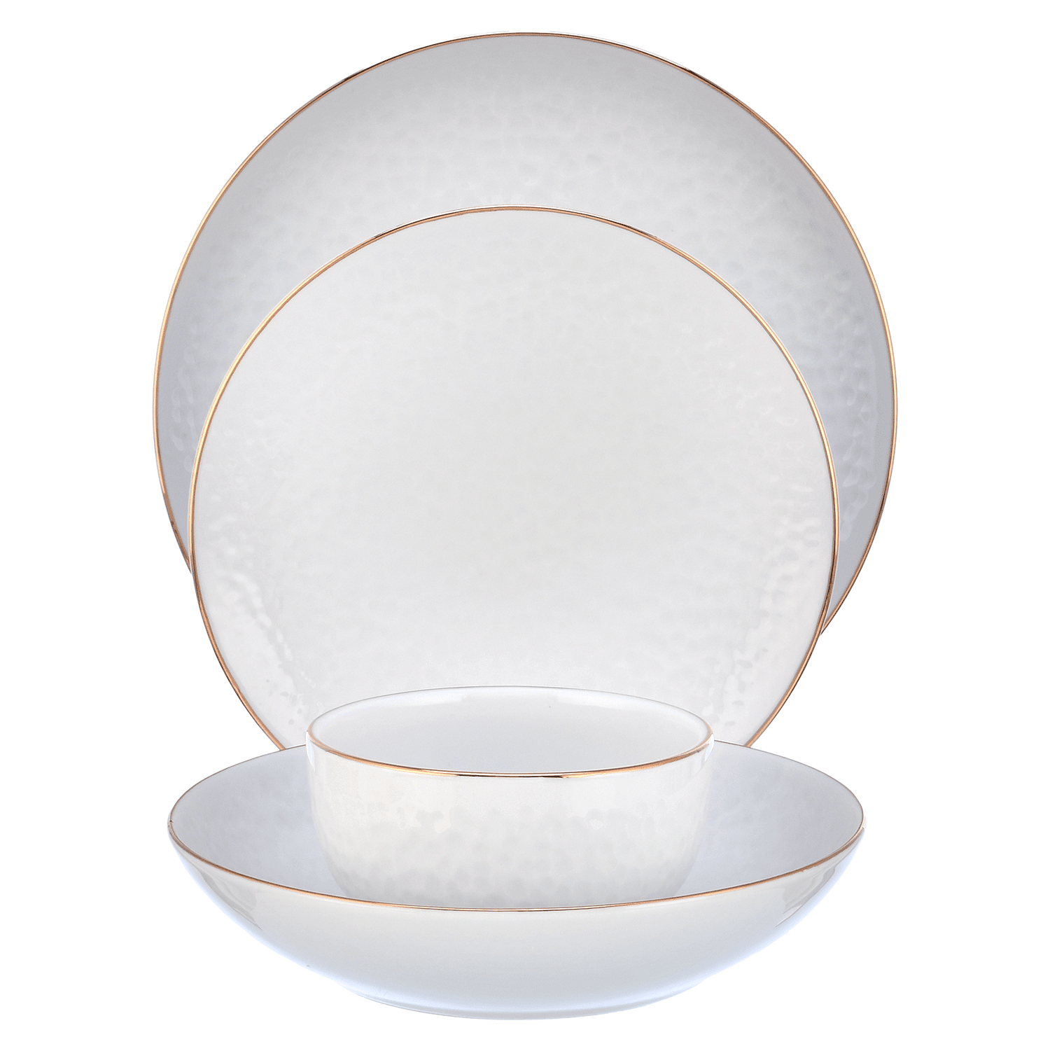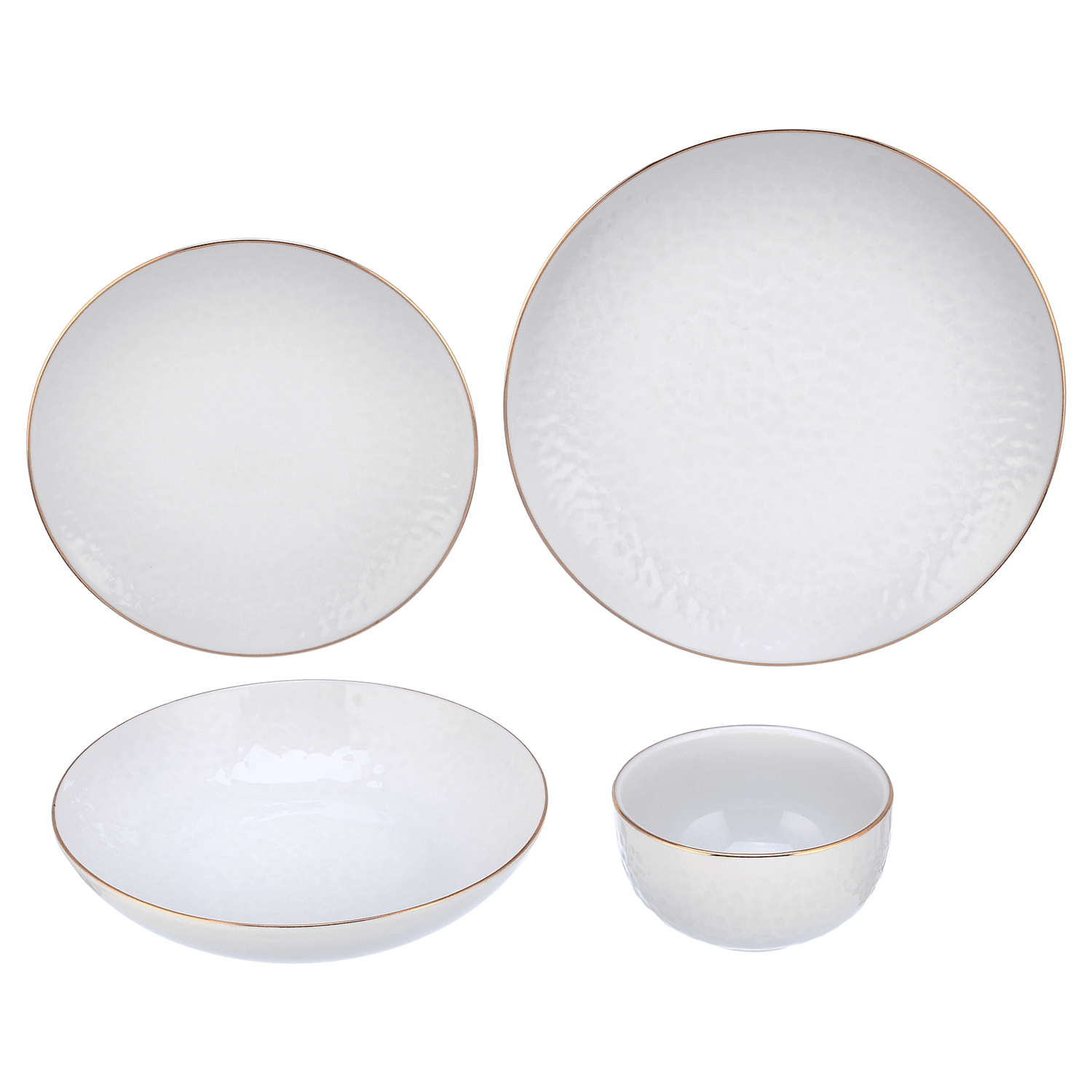 Item: Hammered Daily use Dinner set 24 Pieces with Gold rim - White