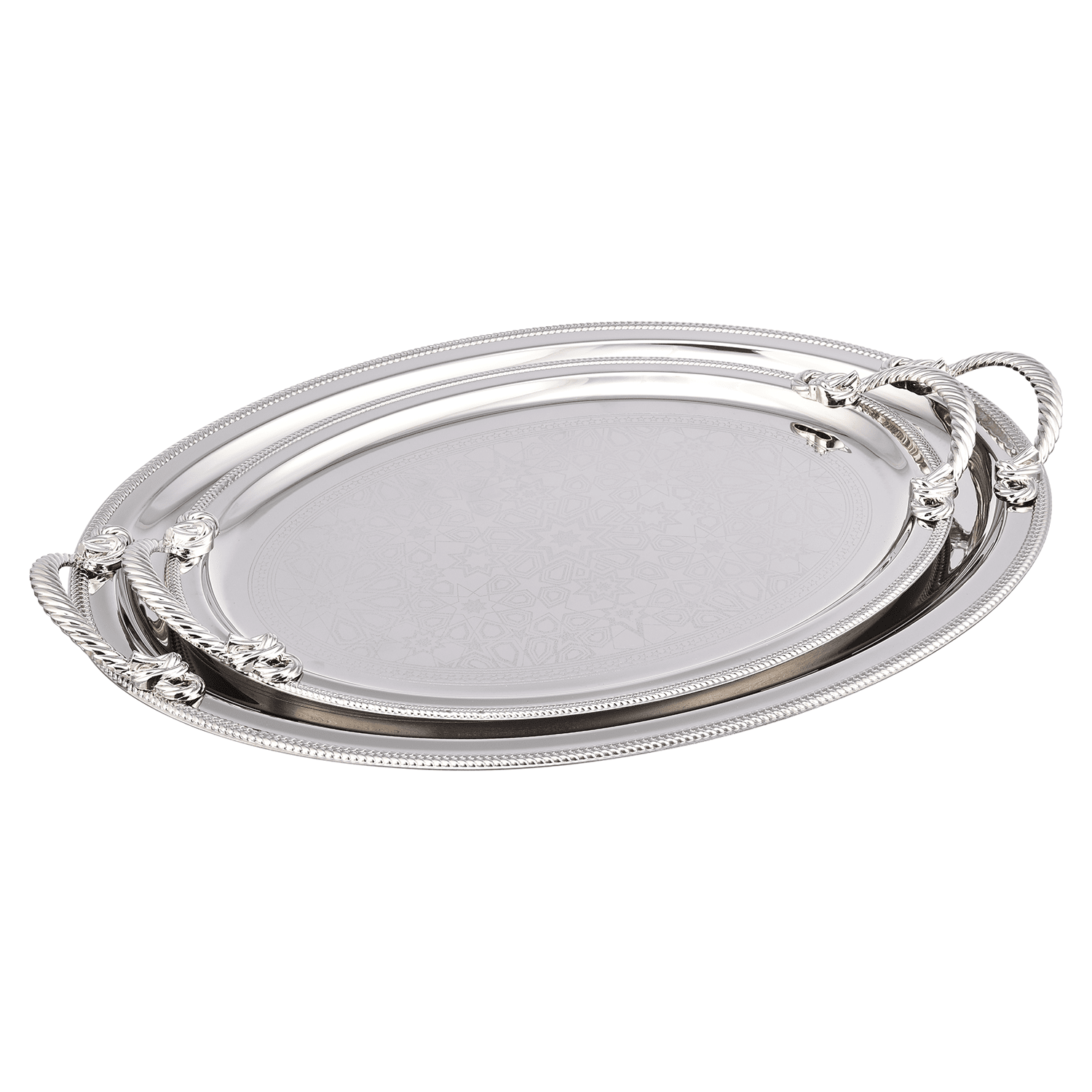 Oval Tray Set with Handles 2 Pieces - Silver - Stainless Steel