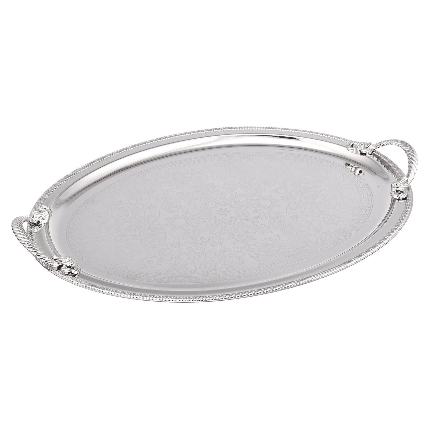 Item: Oval Tray Set with Handles 2 Pieces - Silver